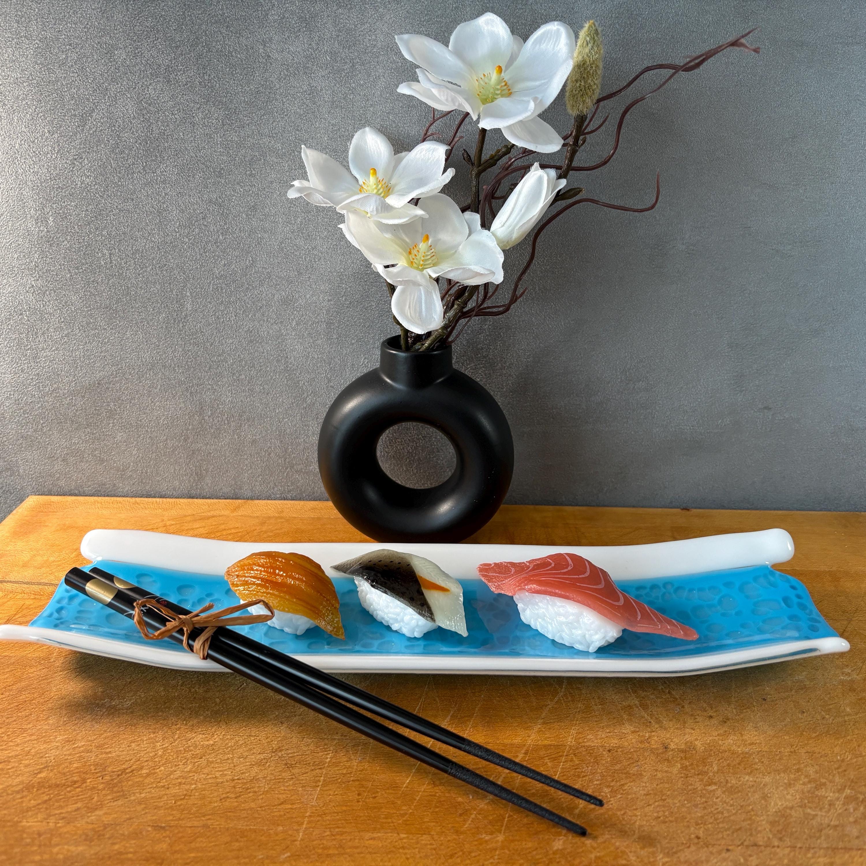 Handmade Fused Glass Designs Sushi/Dessert Tray, curved with raised corners – Art Designs Gift
