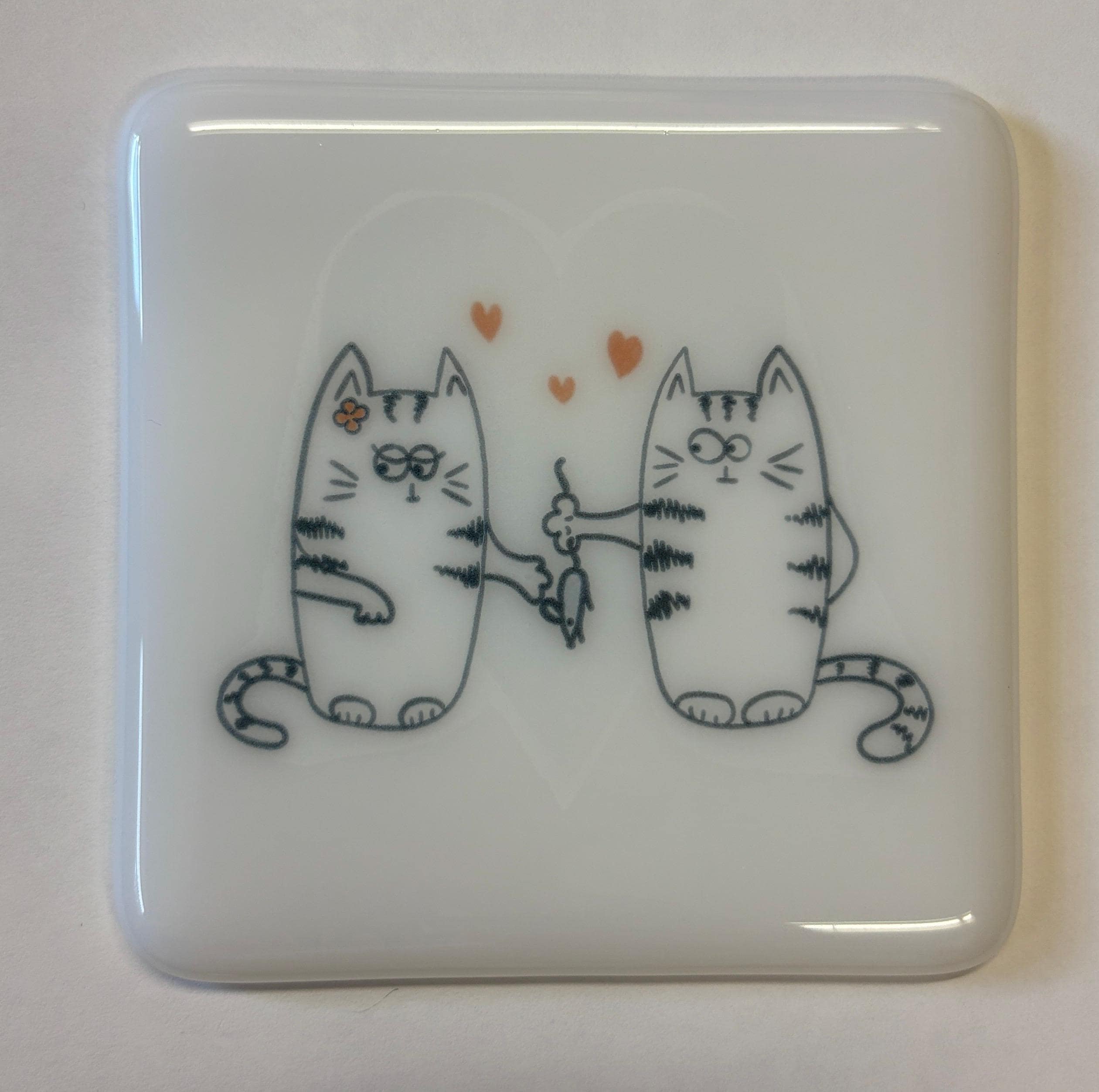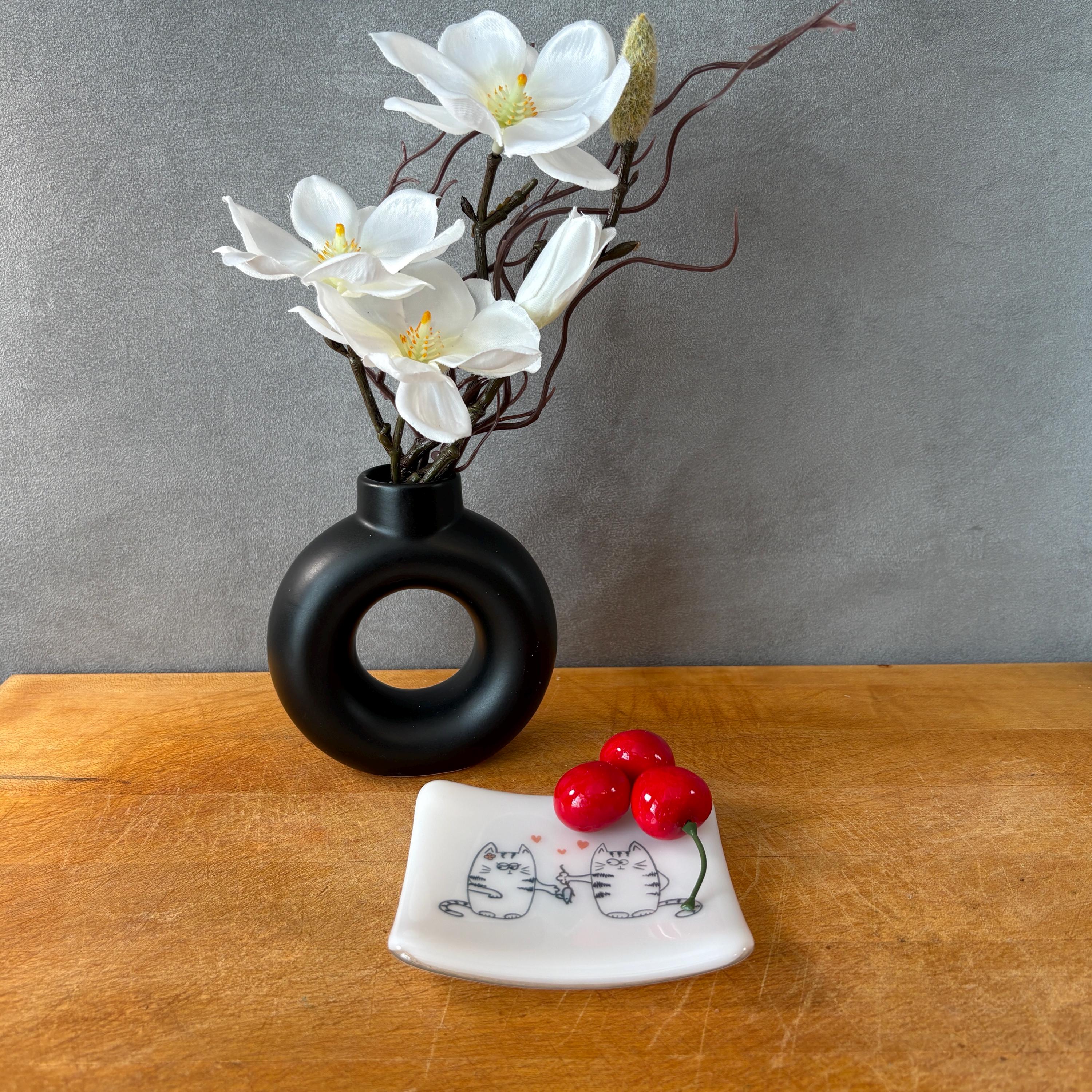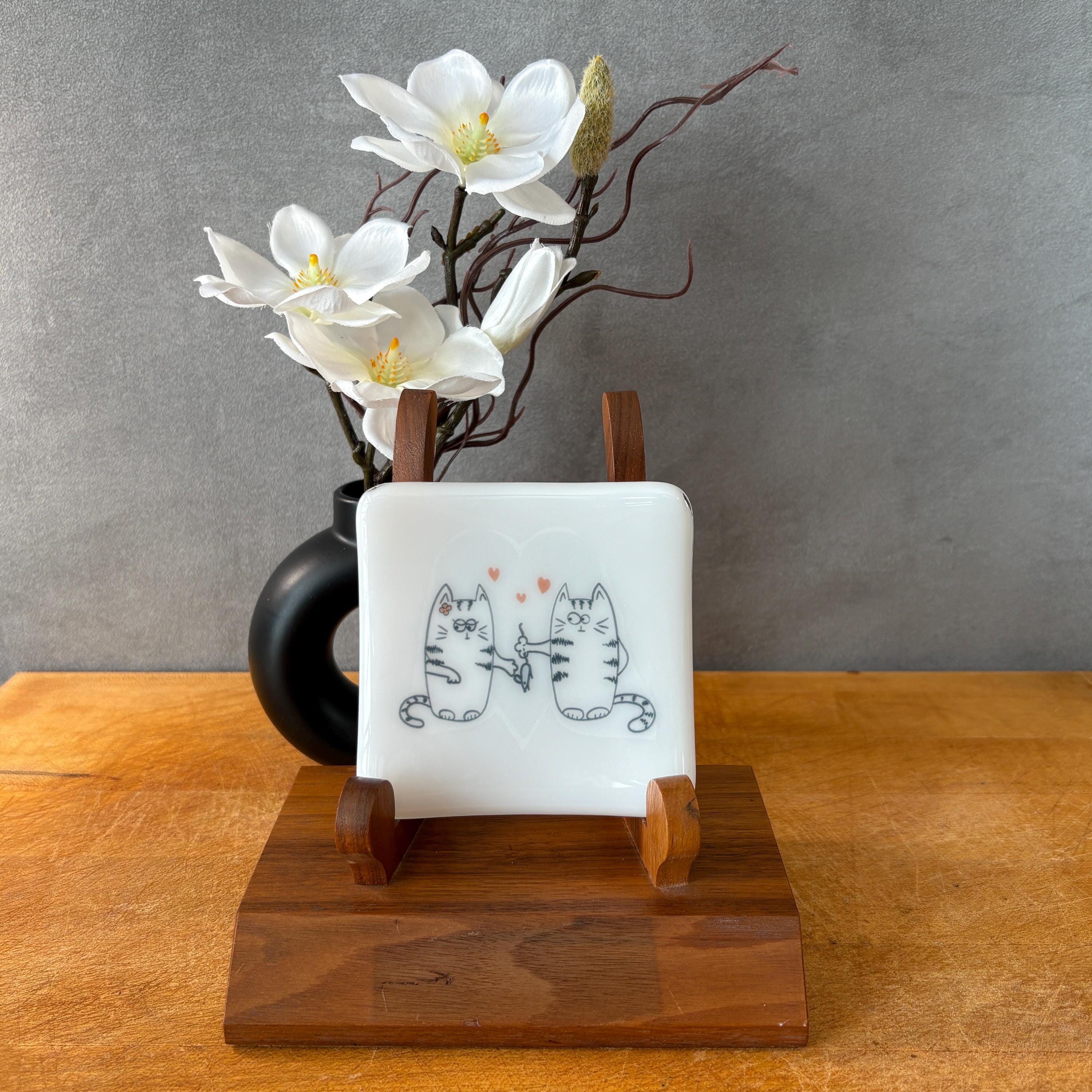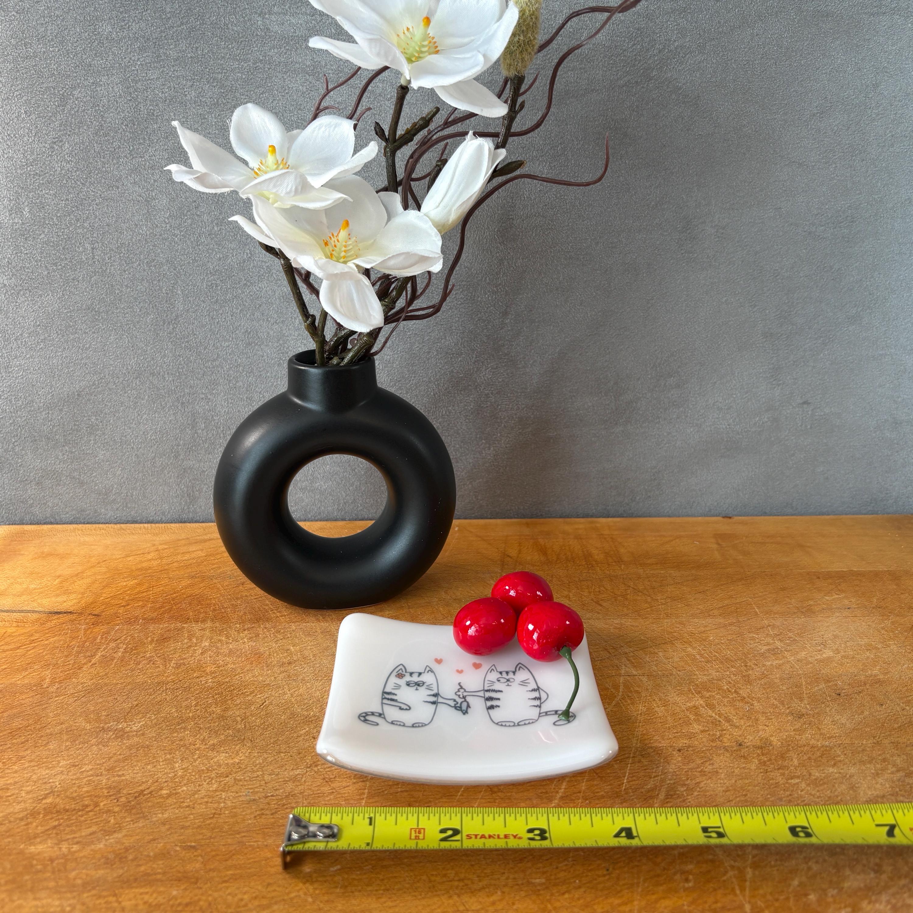 Add a touch of artistry and whimsy to your table with this one-of-a-kind fused glass cat plate, handcrafted by an American artist in the United States. Perfect for sushi or dessert nights, serving small bites, holding small trinkets or jewelry or pebbles or candles, or displayed as a decorative dish, this piece blends playful cat charm with the elegance of kiln-formed glass. Bring joy to your meals or brighten someone’s day with this whimsical cat plate, a functional work of art that’s as fun as it is beautiful.