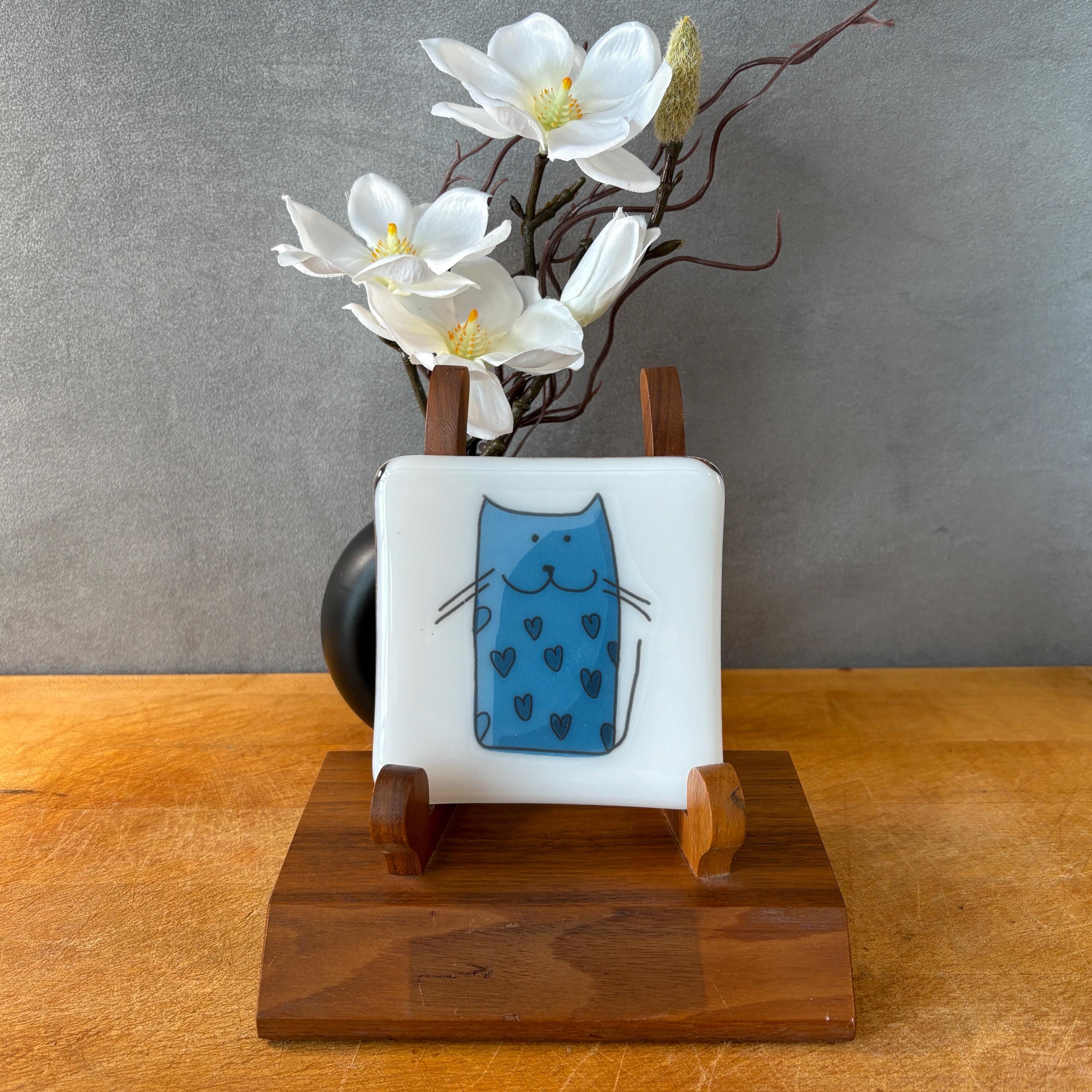 Add a touch of artistry and whimsy to your table with this one-of-a-kind fused glass cat plate, handcrafted by an American artist in the United States. Perfect for sushi or dessert nights, serving small bites, holding small trinkets or jewelry or pebbles or candles, or displayed as a decorative dish, this piece blends playful cat charm with the elegance of kiln-formed glass. Bring joy to your meals or brighten someone’s day with this whimsical cat plate, a functional work of art that’s as fun as it is beautiful.