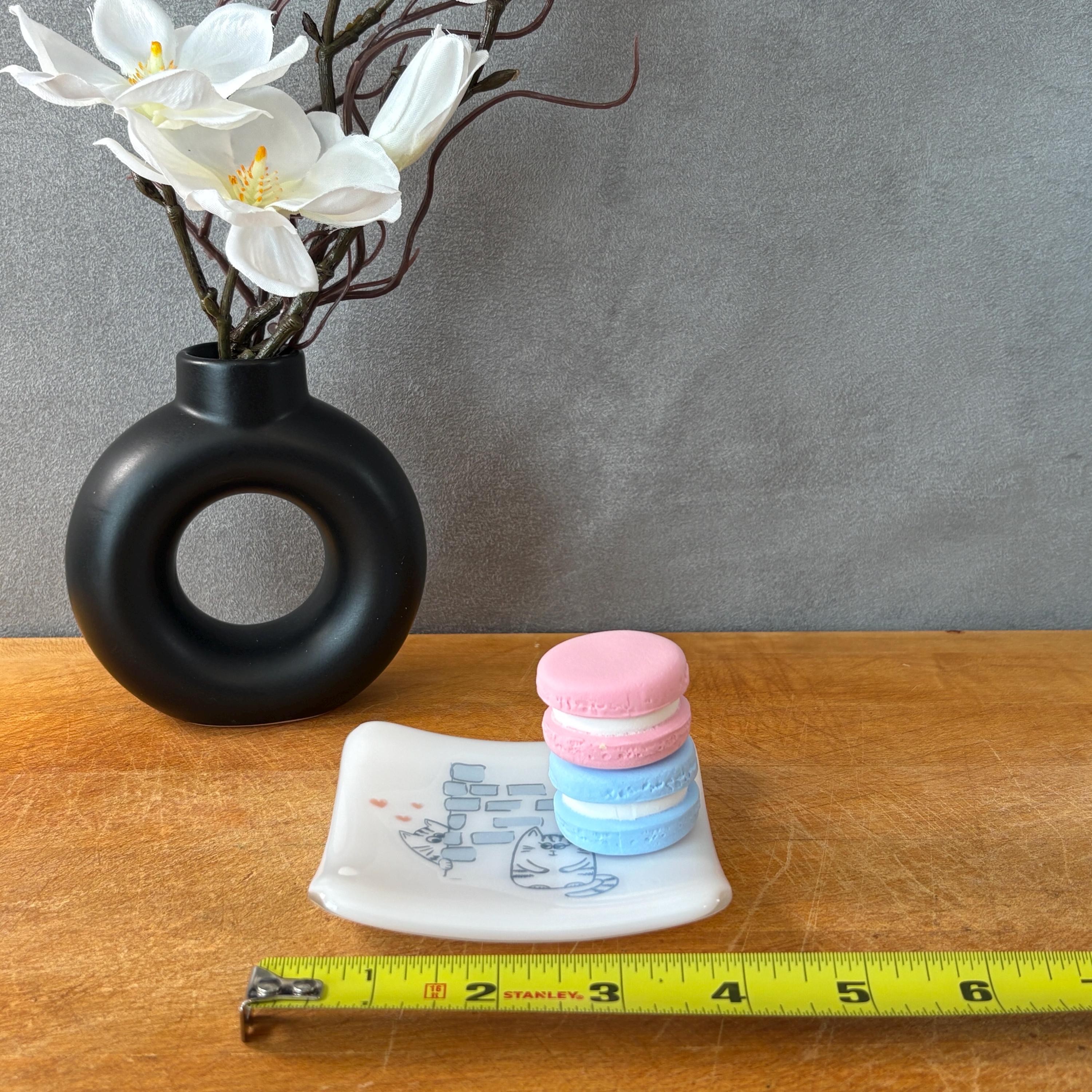 Add a touch of artistry and whimsy to your table with this one-of-a-kind fused glass cat plate, handcrafted by an American artist in the United States. Perfect for sushi or dessert nights, serving small bites, holding small trinkets or jewelry or pebbles or candles, or displayed as a decorative dish, this piece blends playful cat charm with the elegance of kiln-formed glass. Bring joy to your meals or brighten someone’s day with this whimsical cat plate, a functional work of art that’s as fun as it is beautiful.