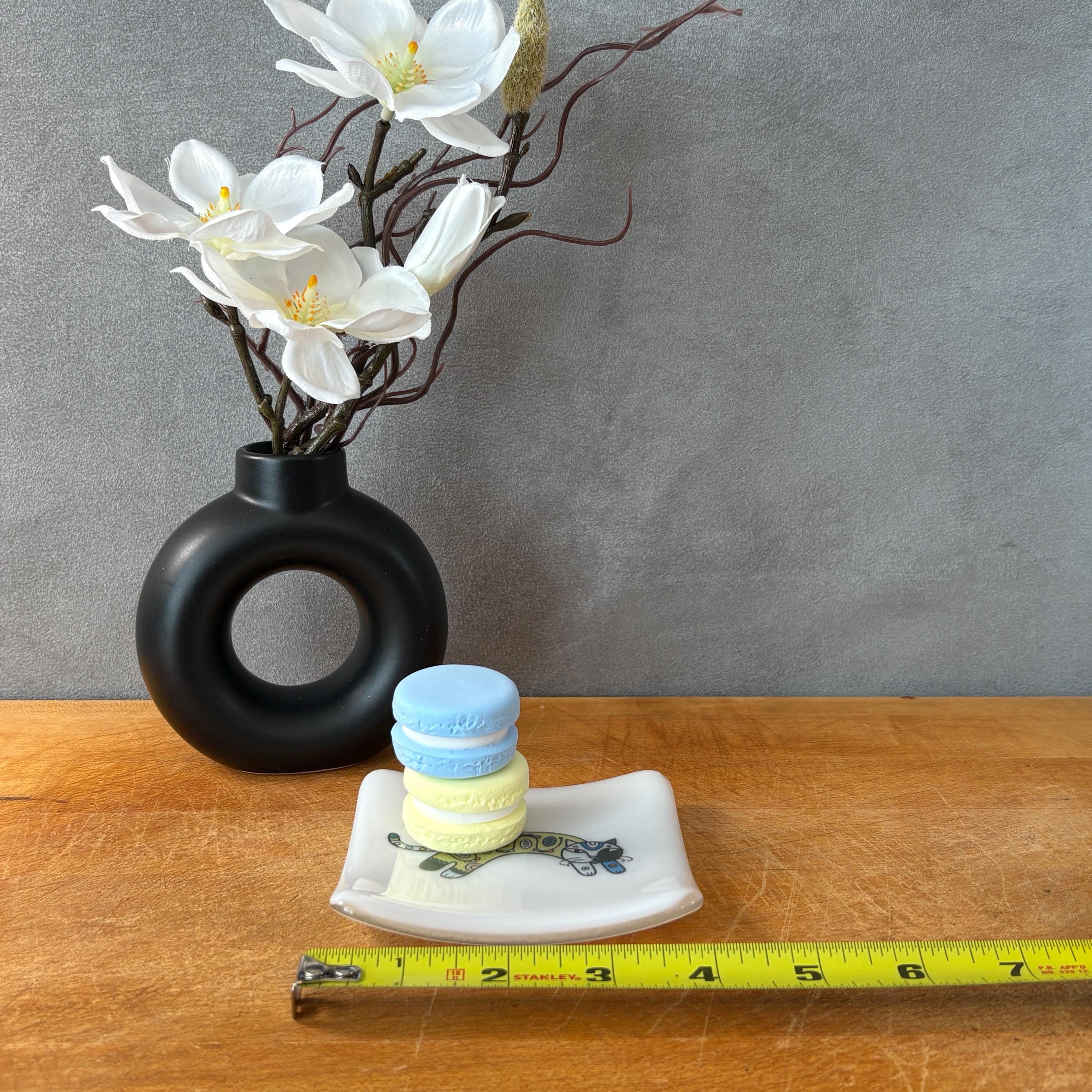 Add a touch of artistry and whimsy to your table with this one-of-a-kind fused glass cat plate, handcrafted by an American artist in the United States. Perfect for sushi or dessert nights, serving small bites, holding small trinkets or jewelry or pebbles or candles, or displayed as a decorative dish, this piece blends playful cat charm with the elegance of kiln-formed glass. Bring joy to your meals or brighten someone’s day with this whimsical cat plate, a functional work of art that’s as fun as it is beautiful.