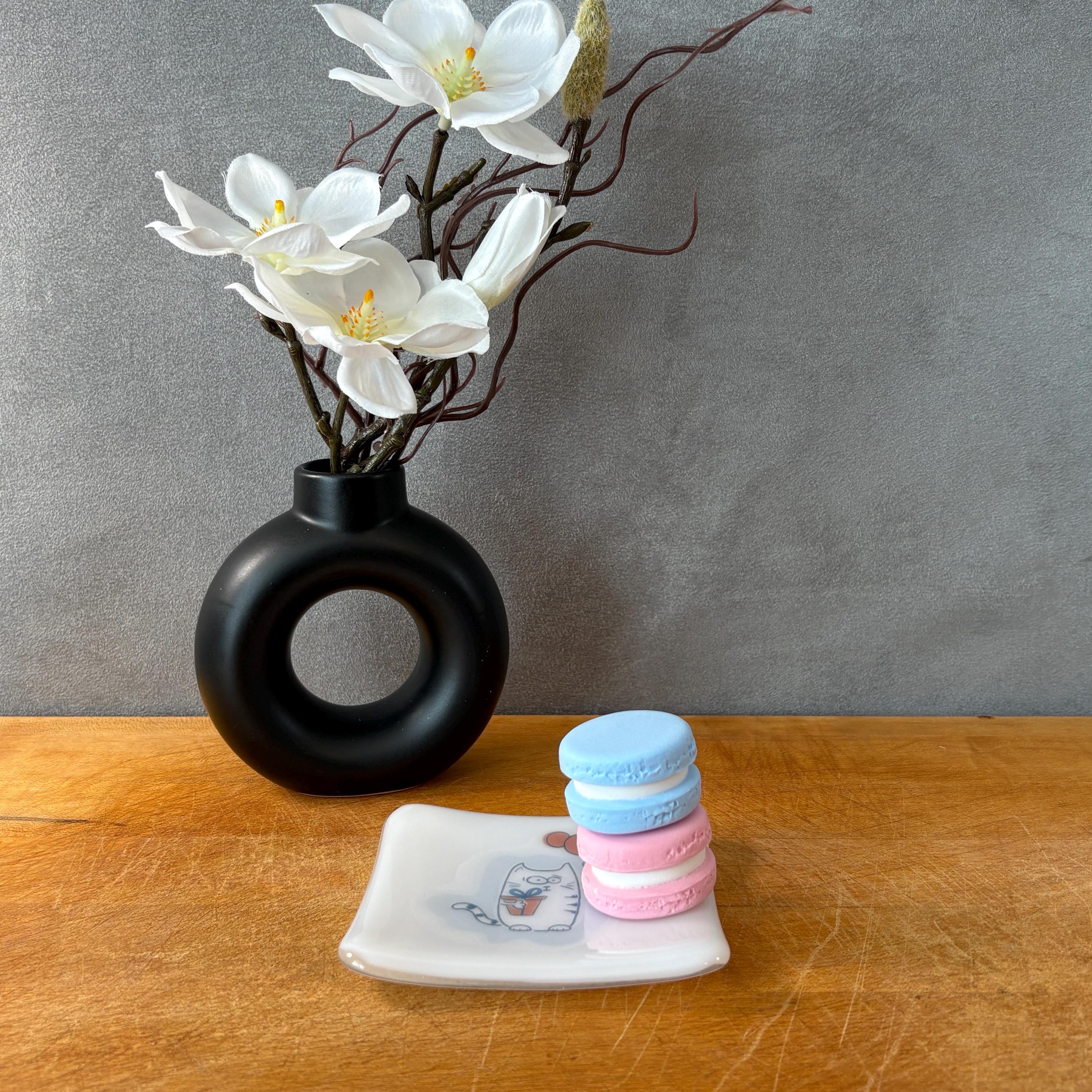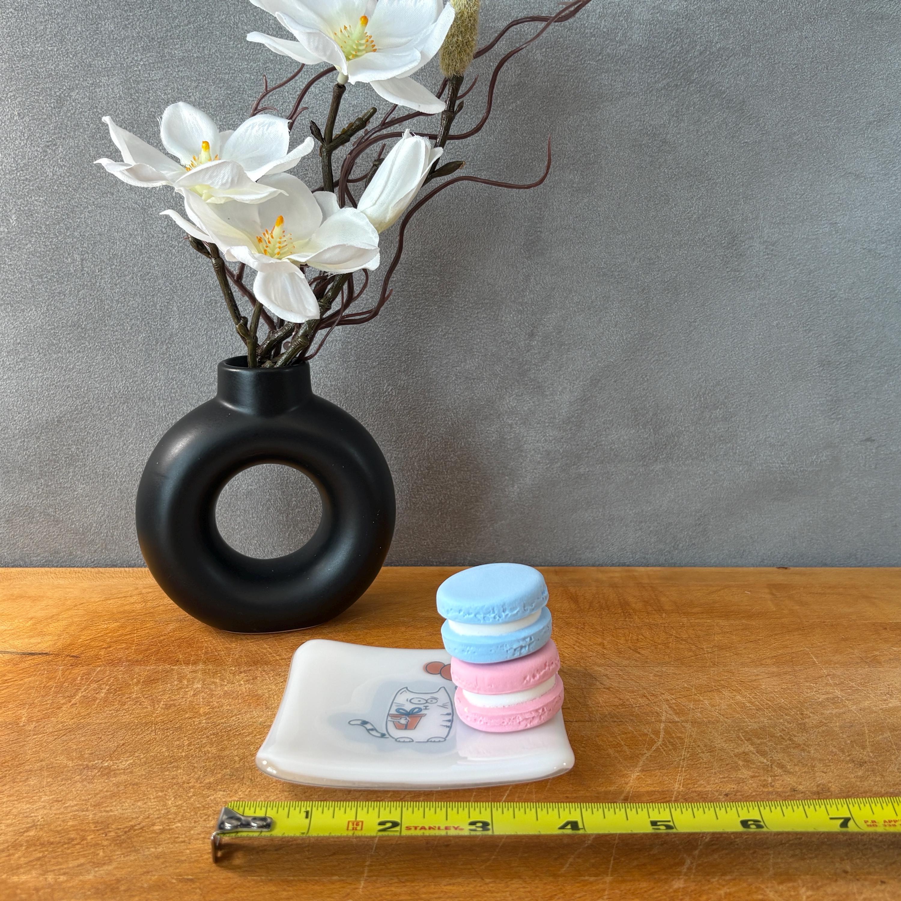 Add a touch of artistry and whimsy to your table with this one-of-a-kind fused glass cat plate, handcrafted by an American artist in the United States. Perfect for sushi or dessert nights, serving small bites, holding small trinkets or jewelry or pebbles or candles, or displayed as a decorative dish, this piece blends playful cat charm with the elegance of kiln-formed glass. Bring joy to your meals or brighten someone’s day with this whimsical cat plate, a functional work of art that’s as fun as it is beautiful.