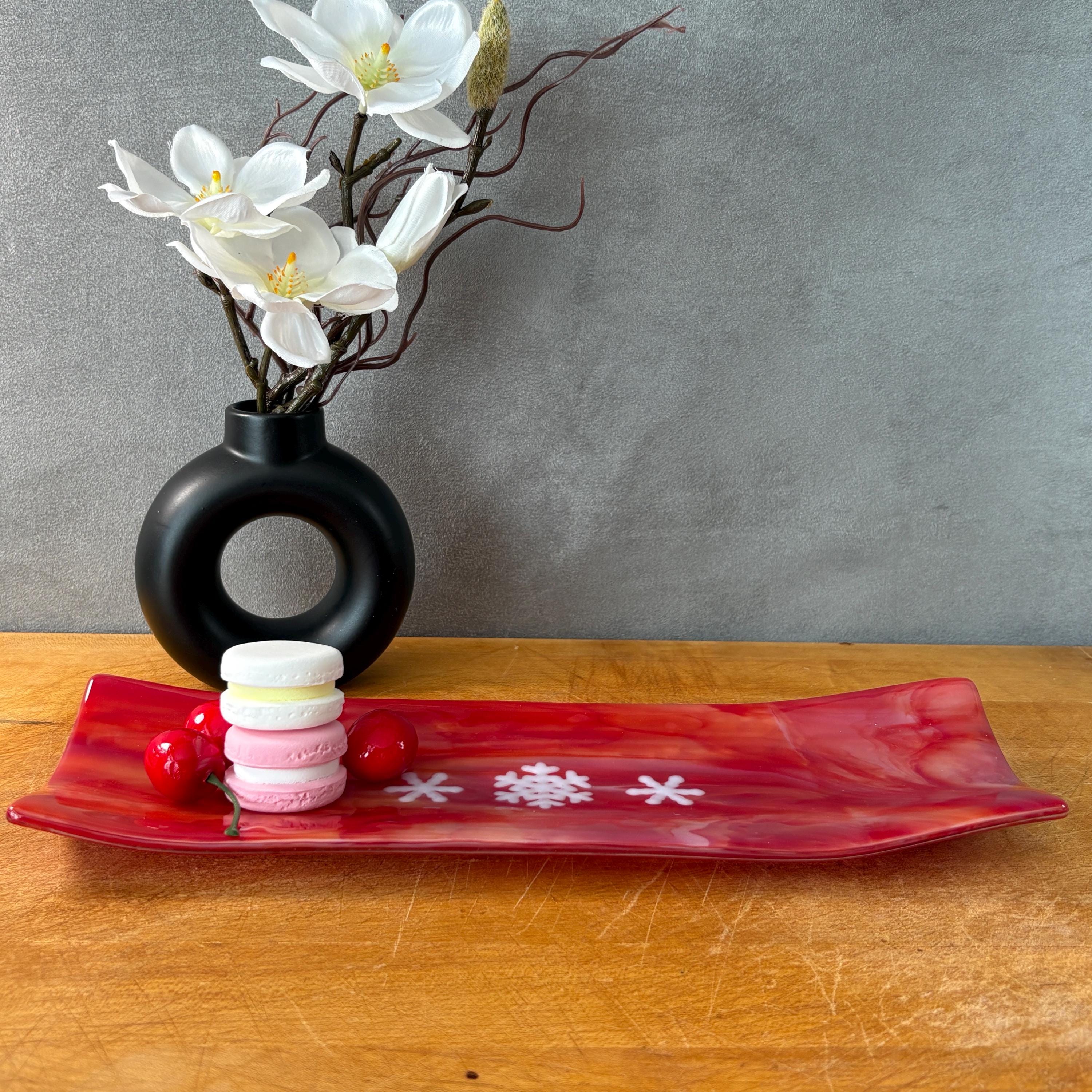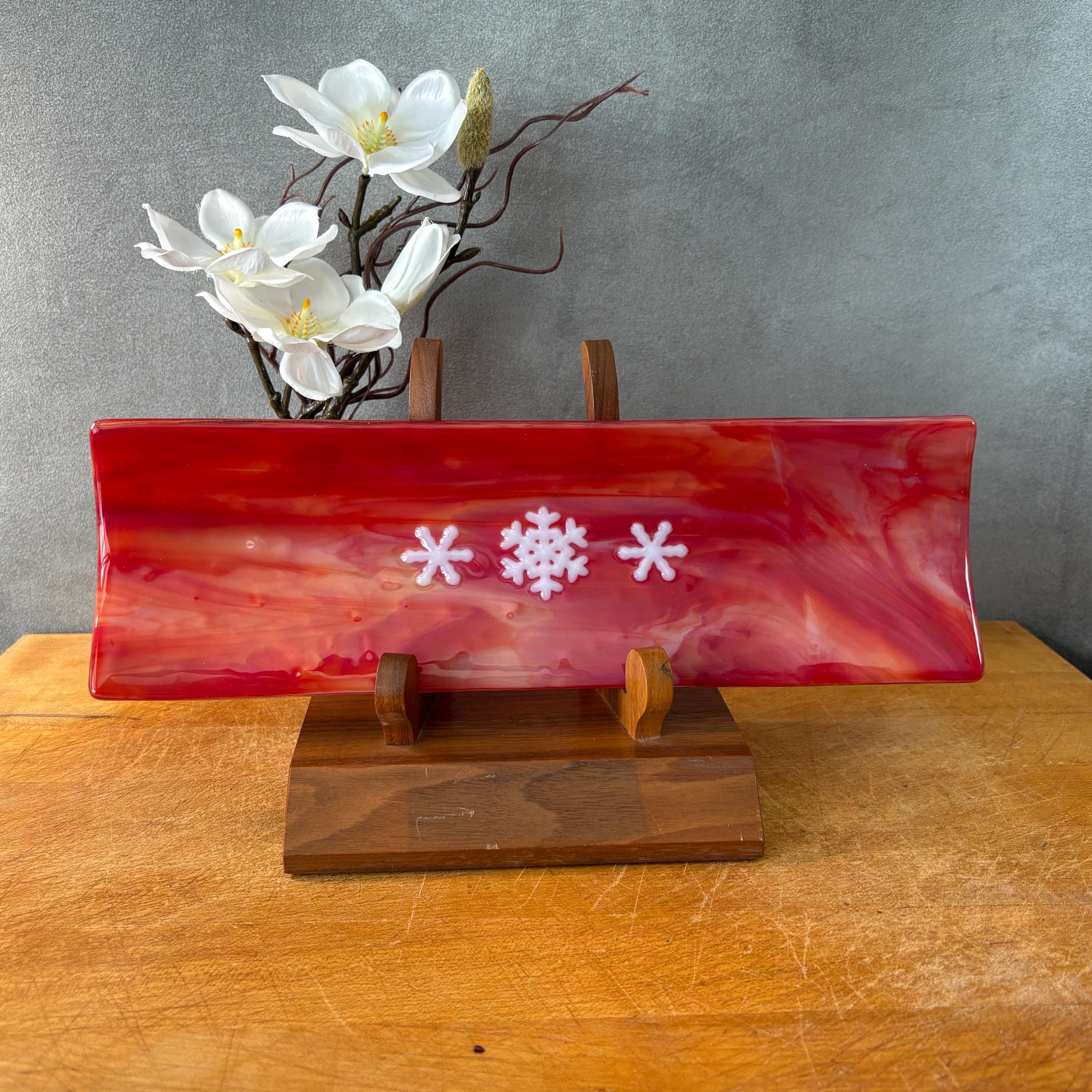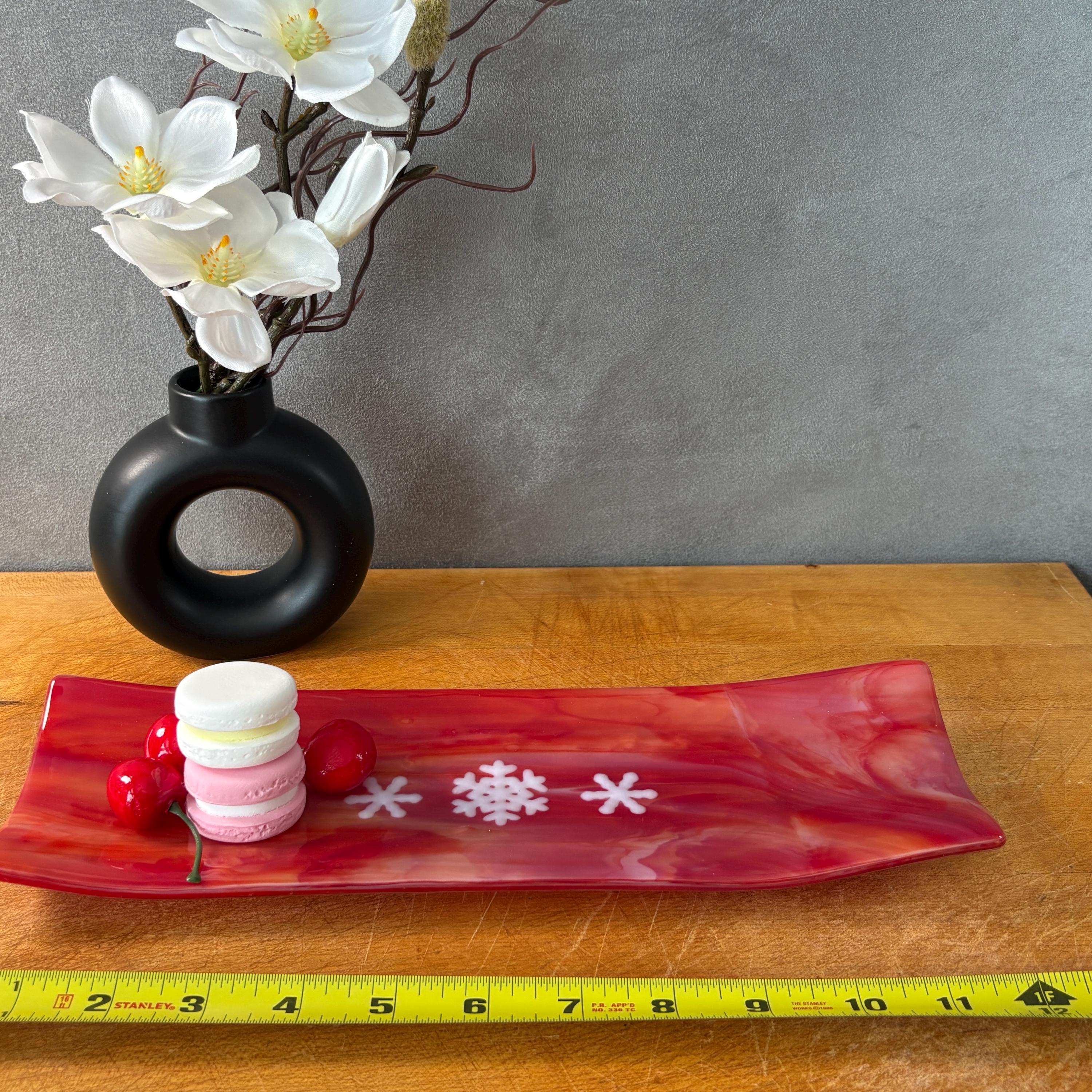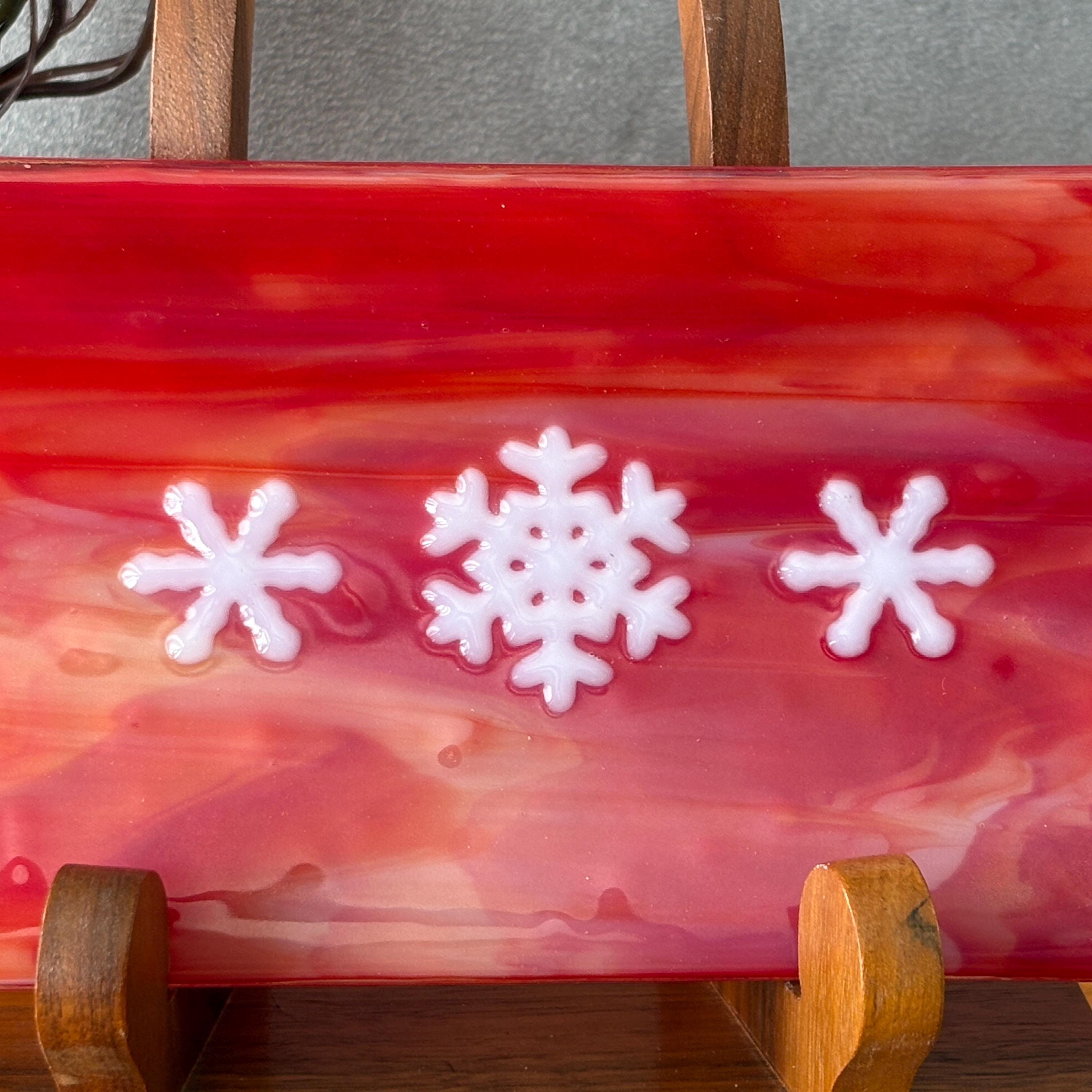 destray014-Handmade Snowflakes, Fused Glass Tray: Art Dessert Sushi Plate - US Made No Tariffs