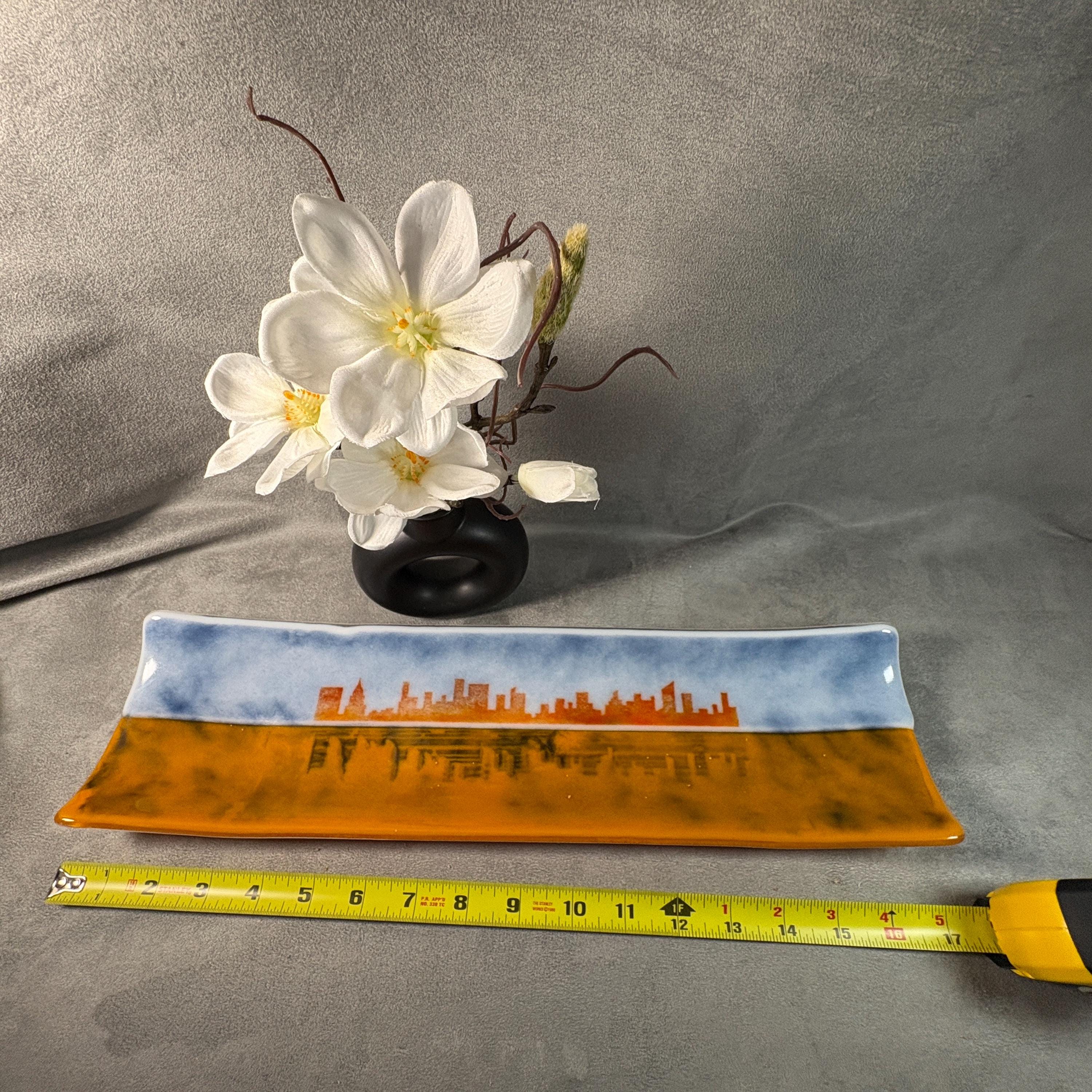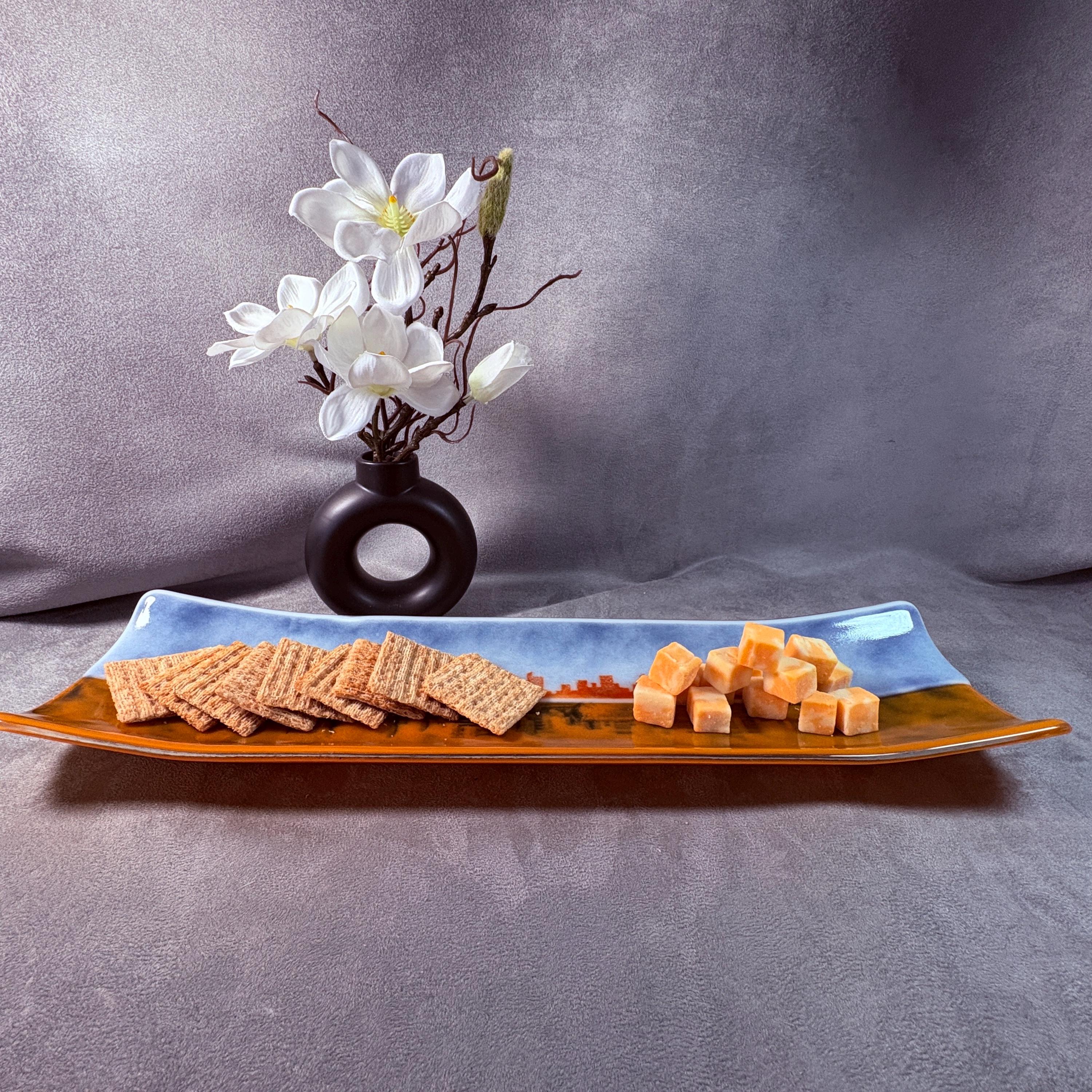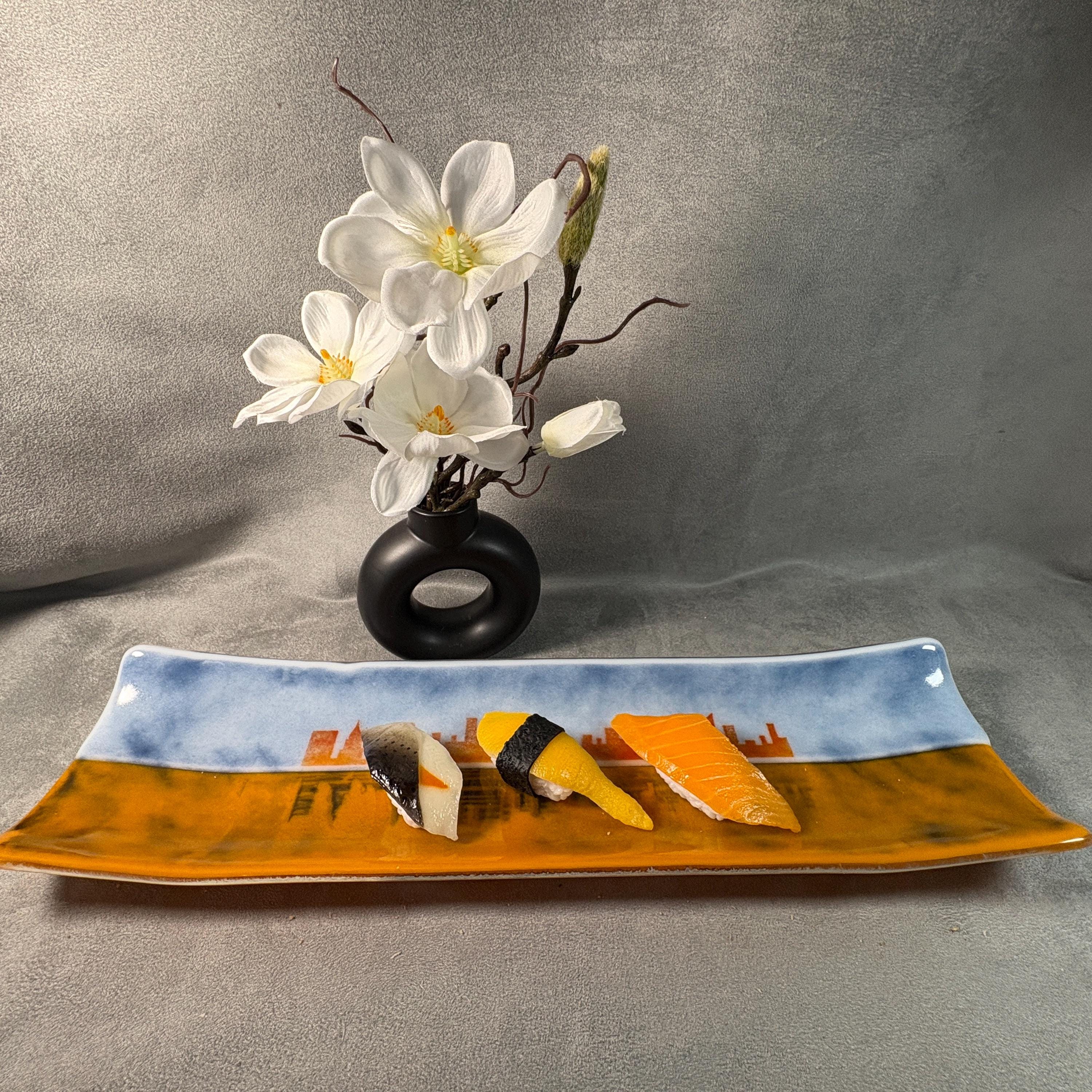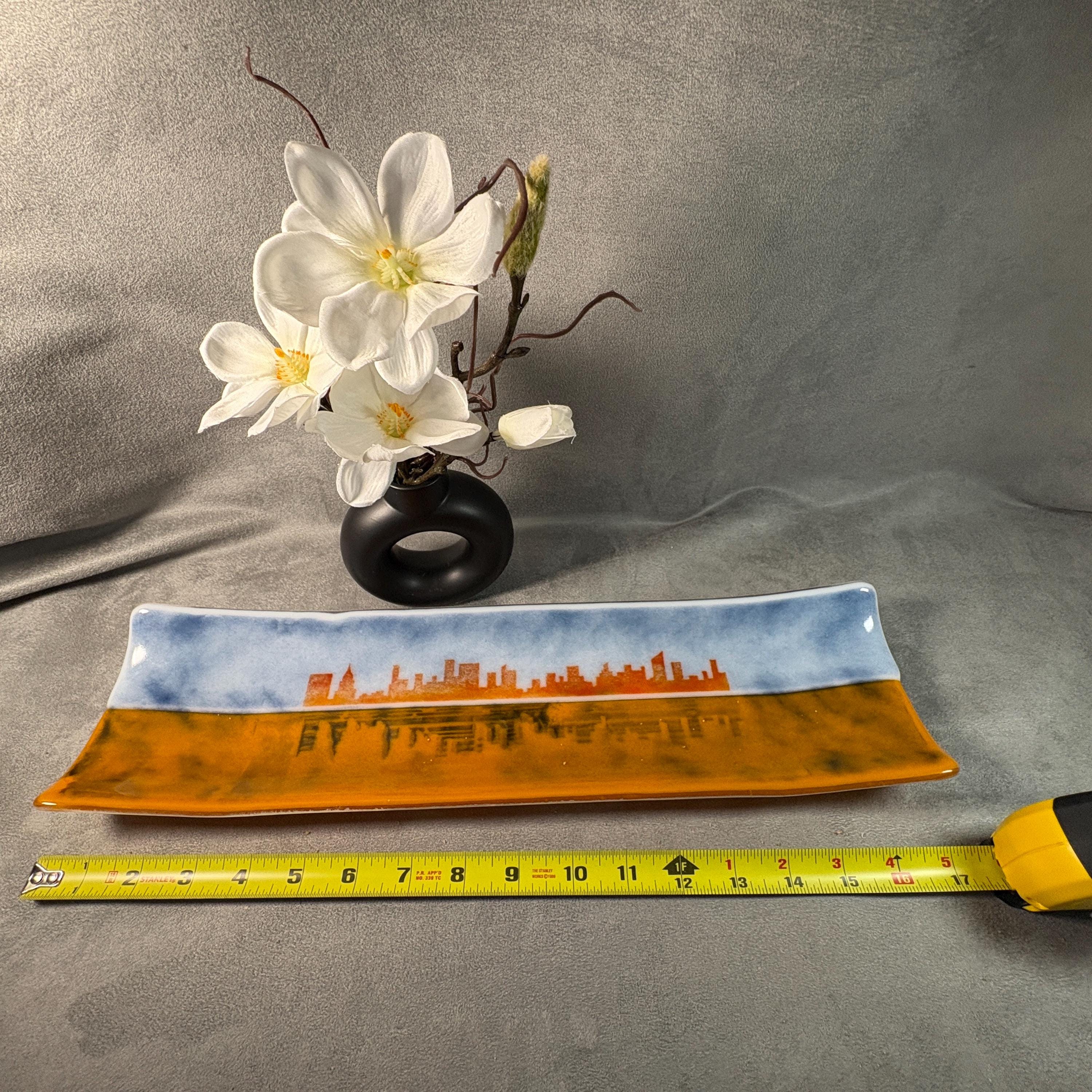 lgtray002-Cityview – 17” Hand-Fused Glass Sushi Tray (Because Your Sushi Deserves to Feel Fancy)