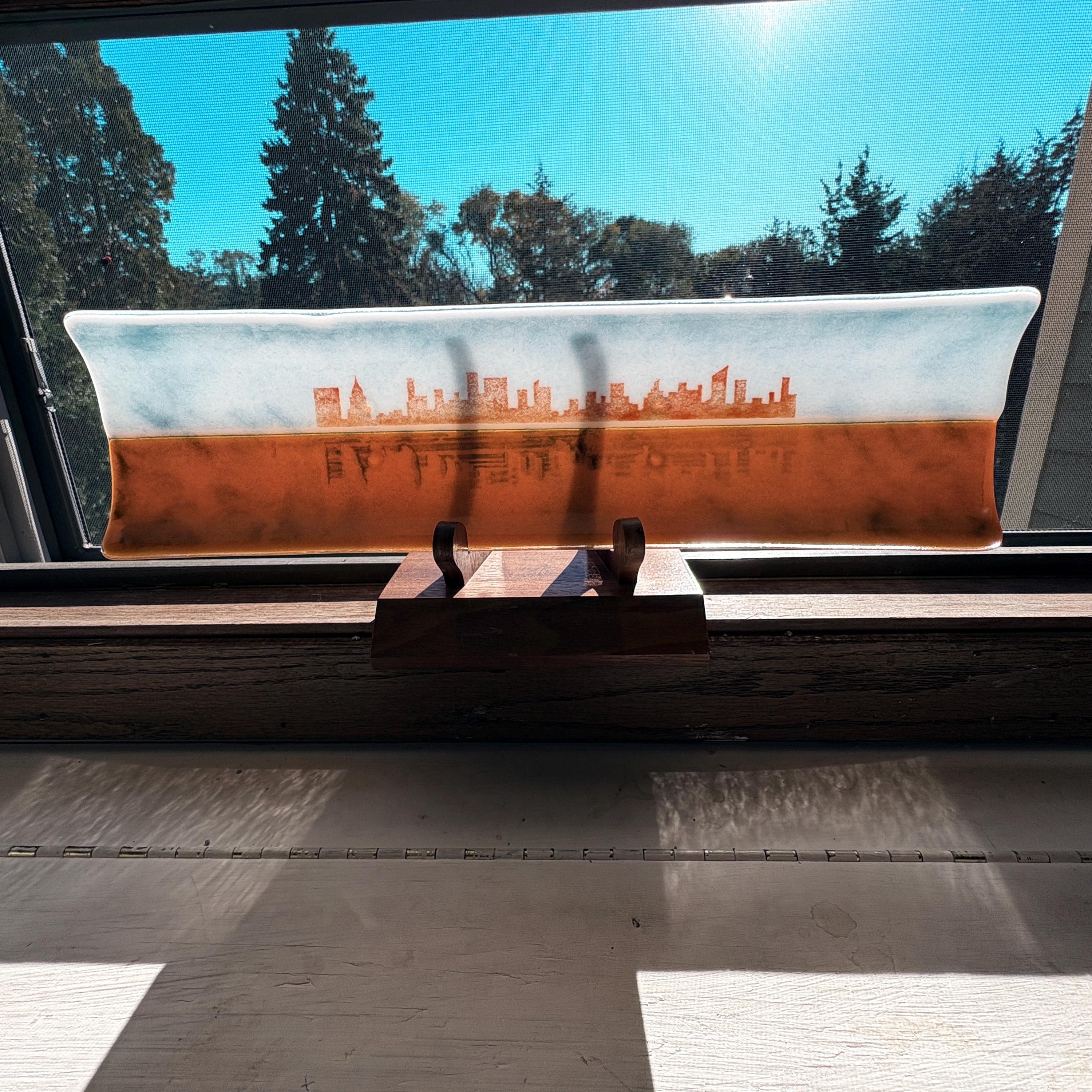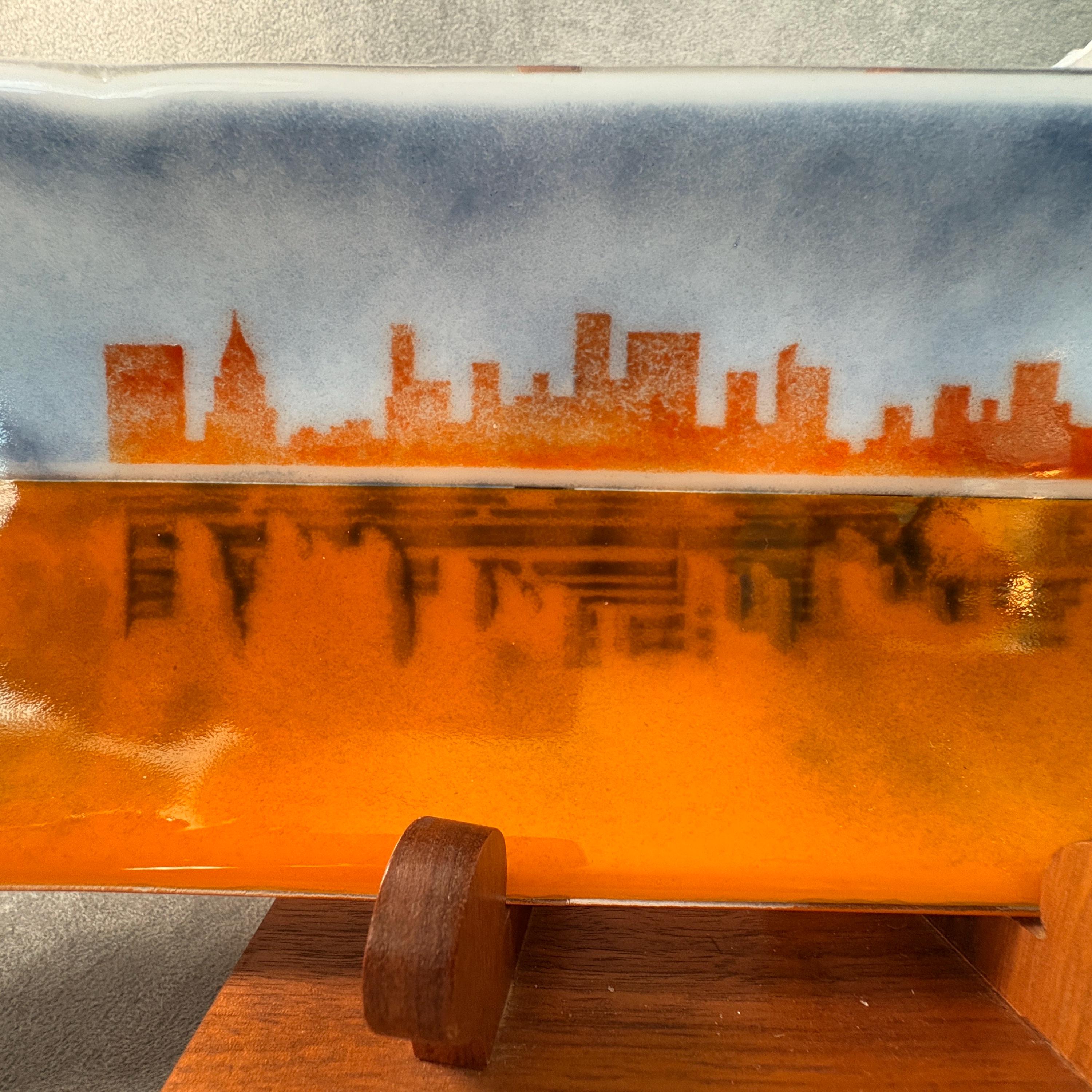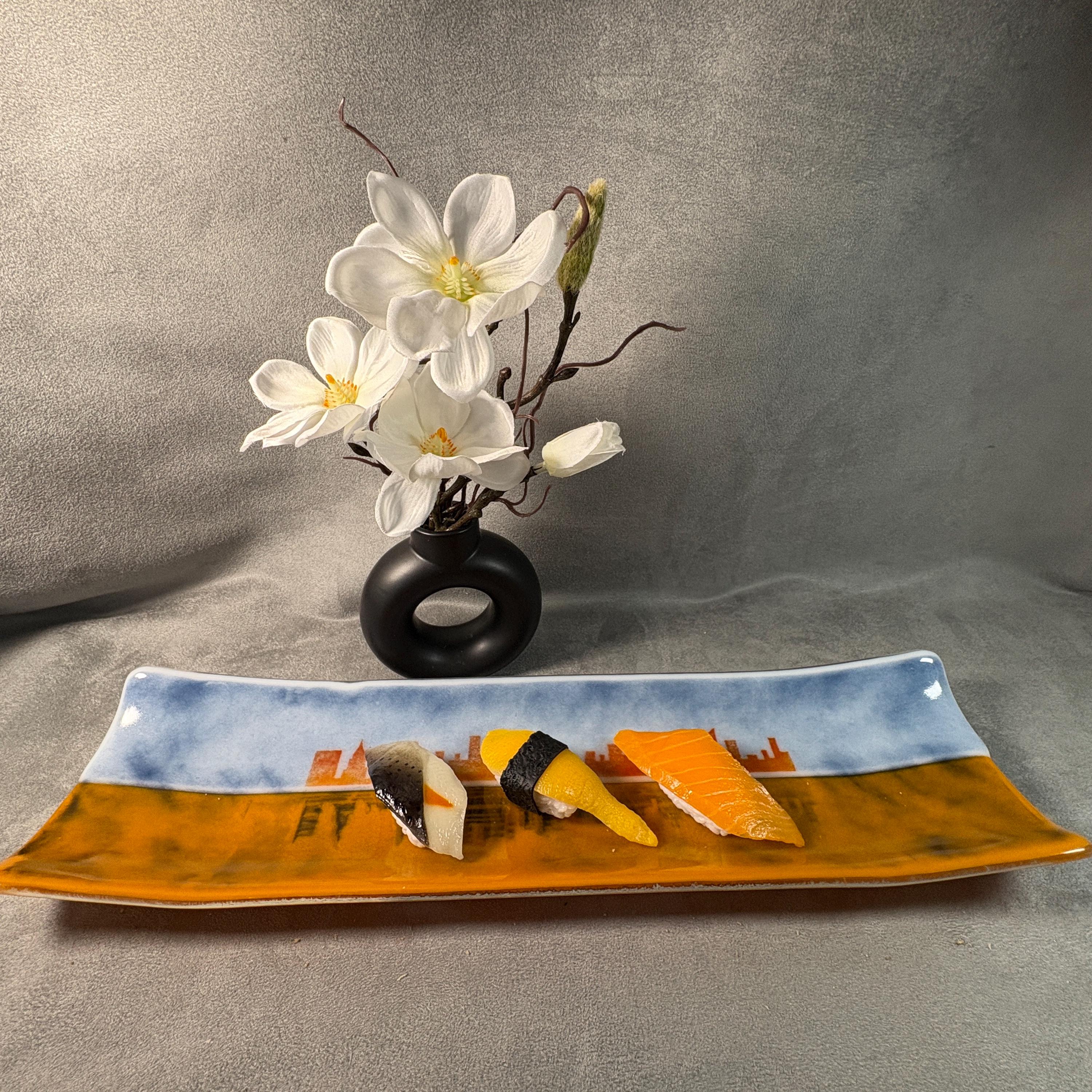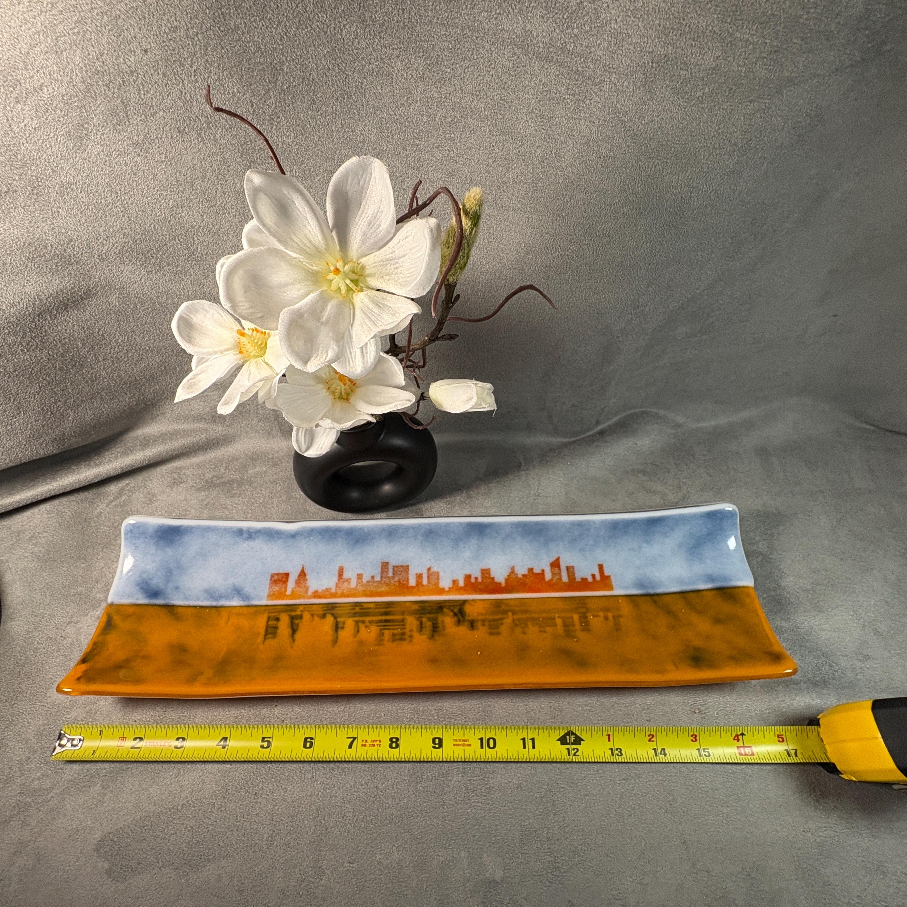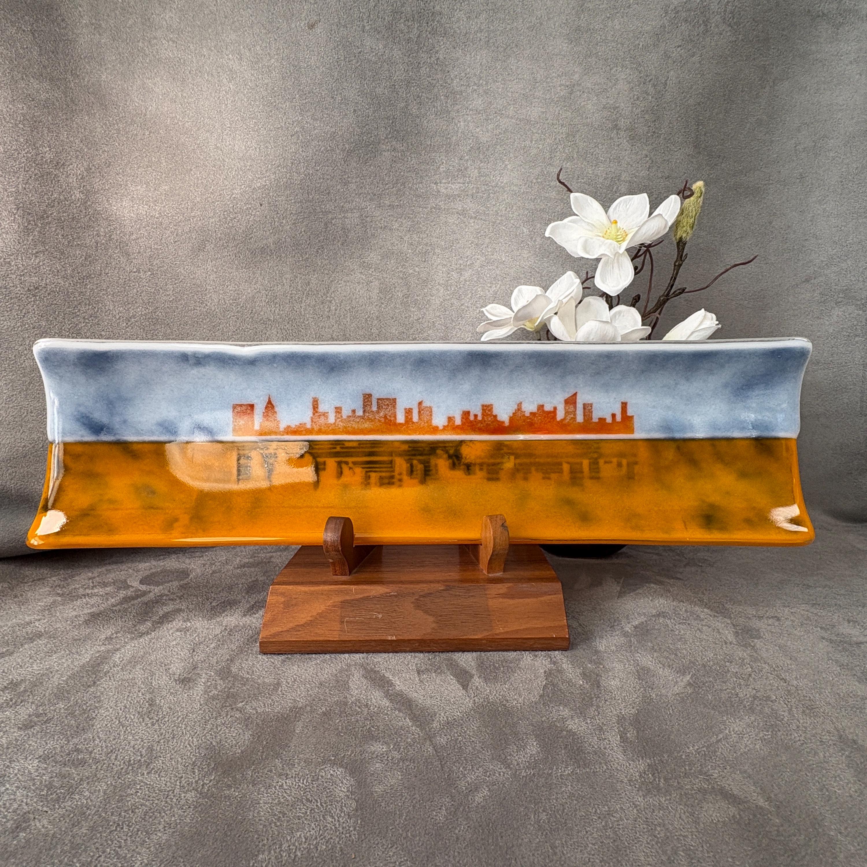 lgtray002-Cityview – 17” Hand-Fused Glass Sushi Tray (Because Your Sushi Deserves to Feel Fancy)