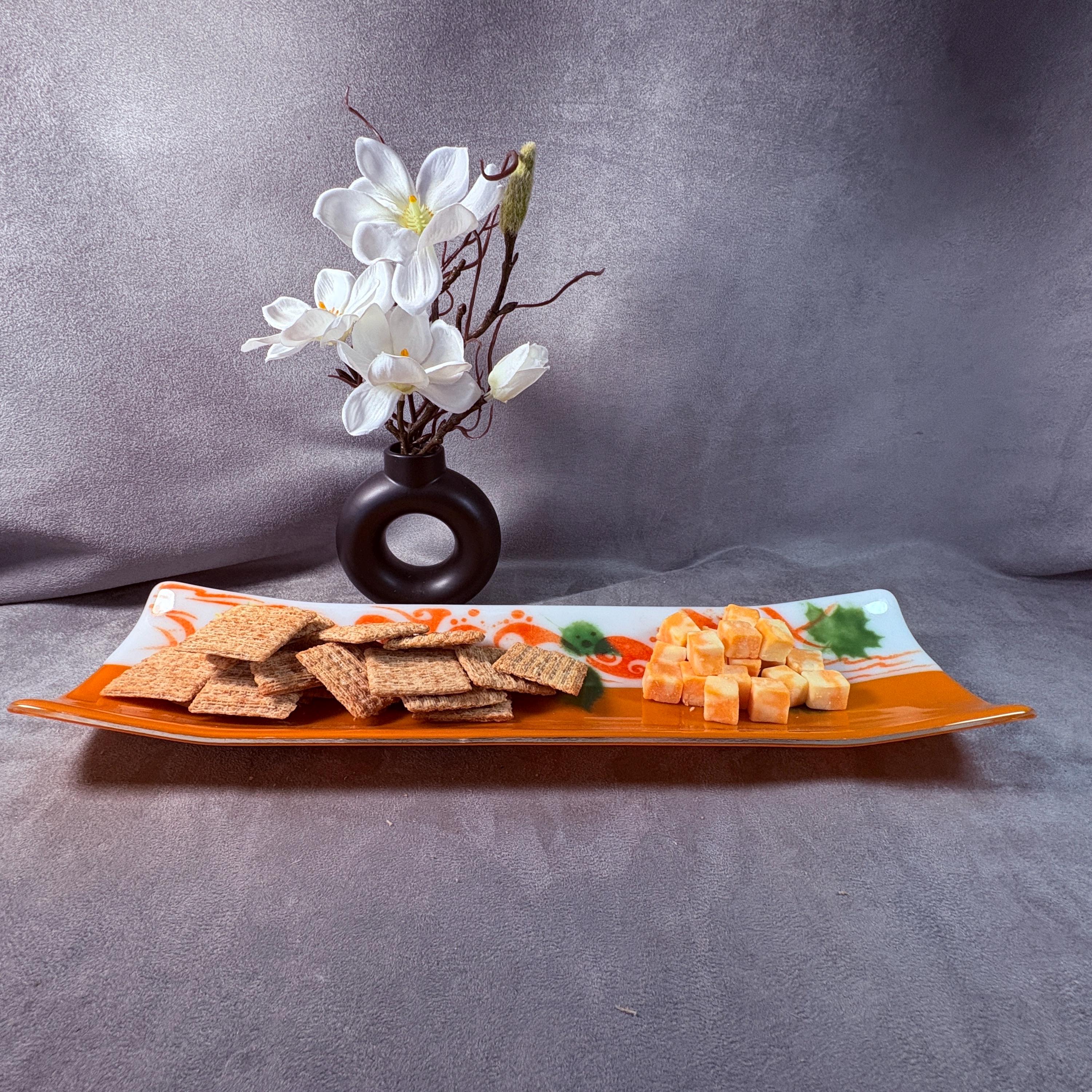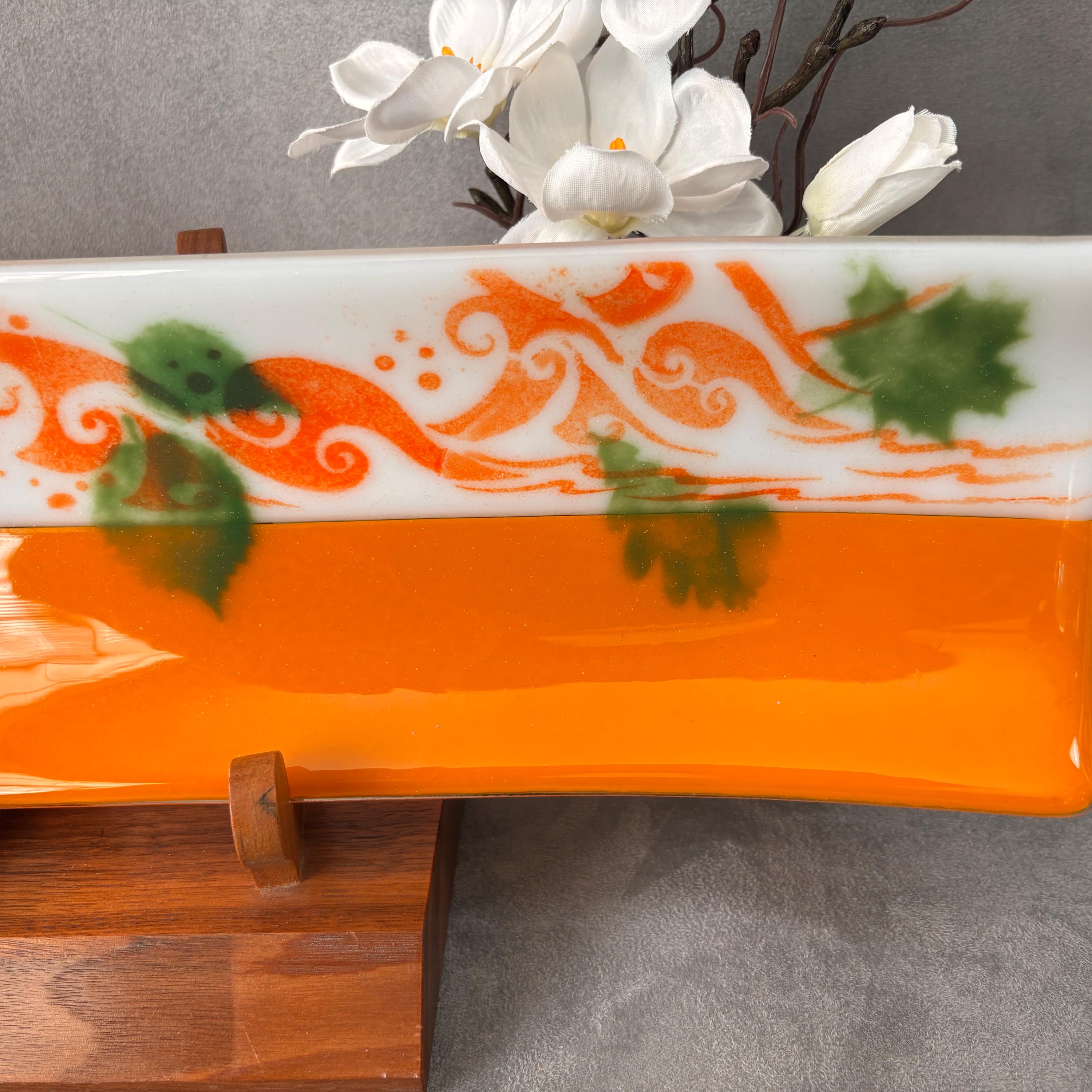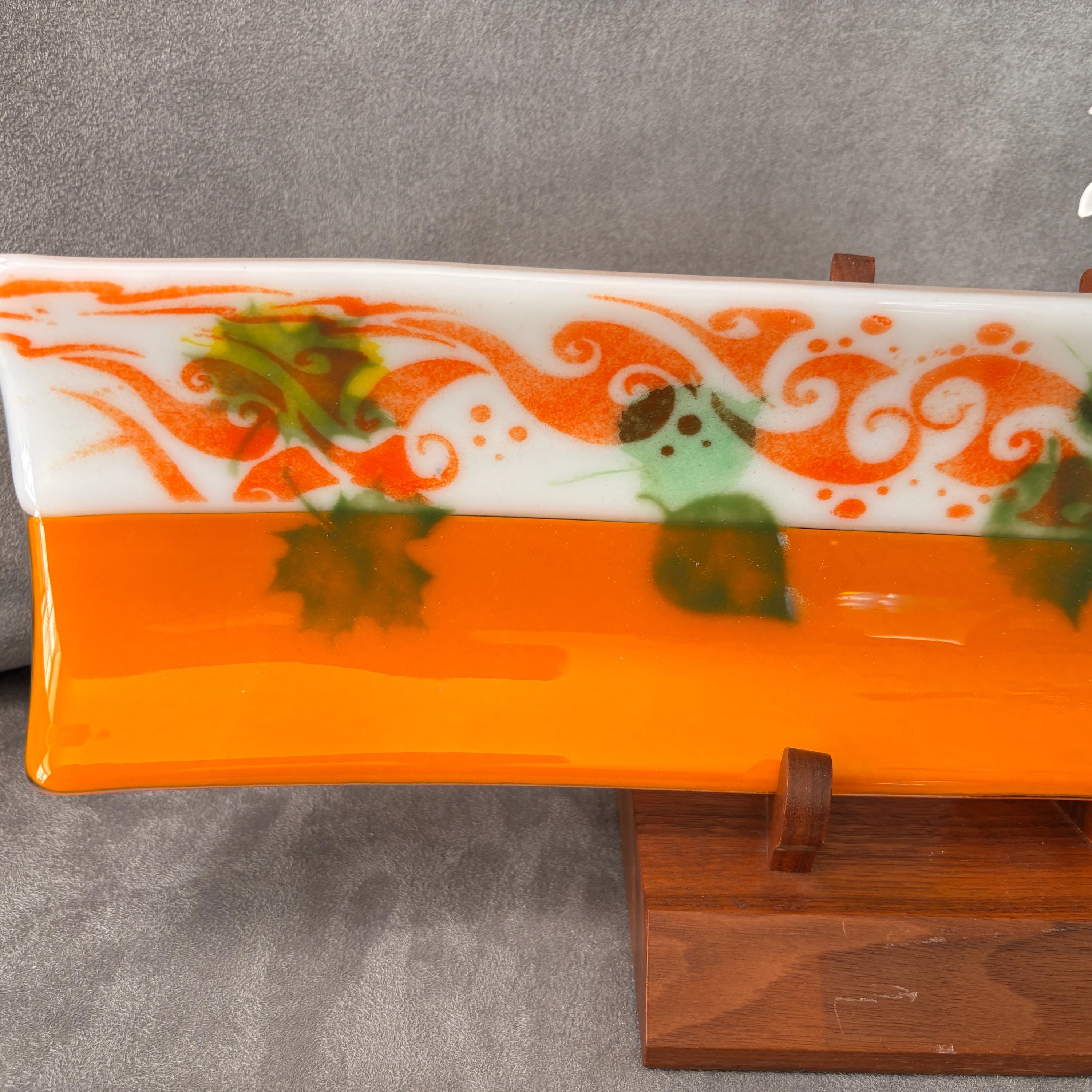 lgtray005-Orange Design – 17” Hand-Fused Glass Sushi Tray (Because Your Sushi Deserves to Feel Fancy)