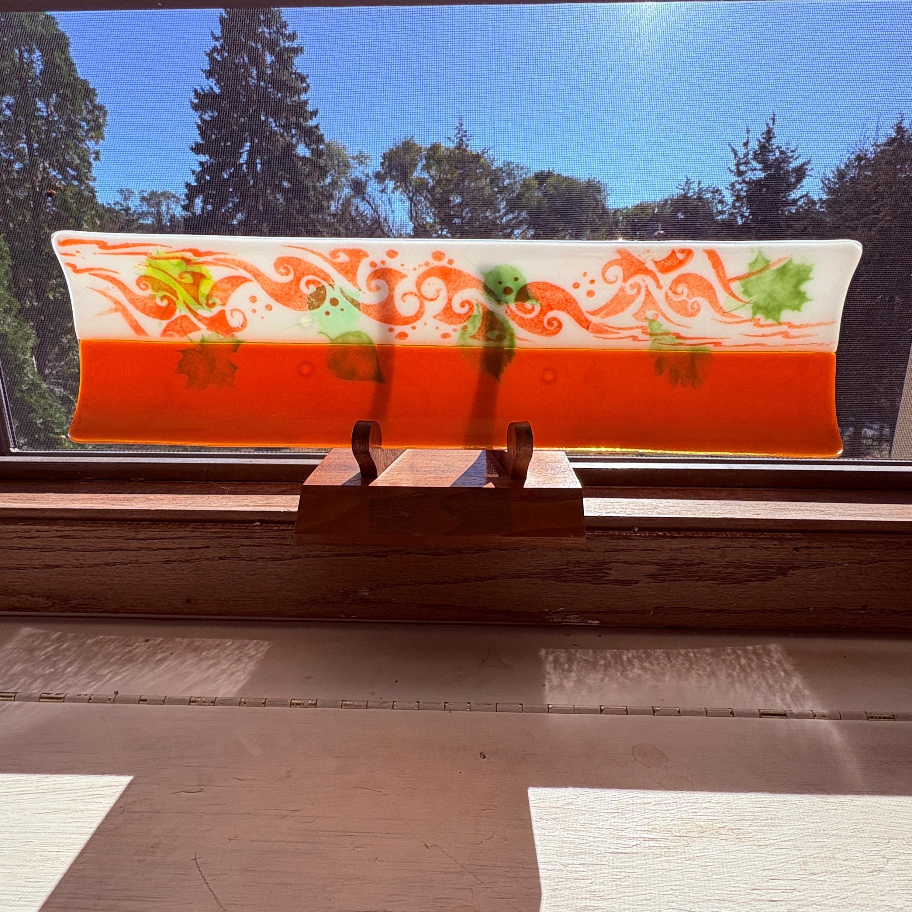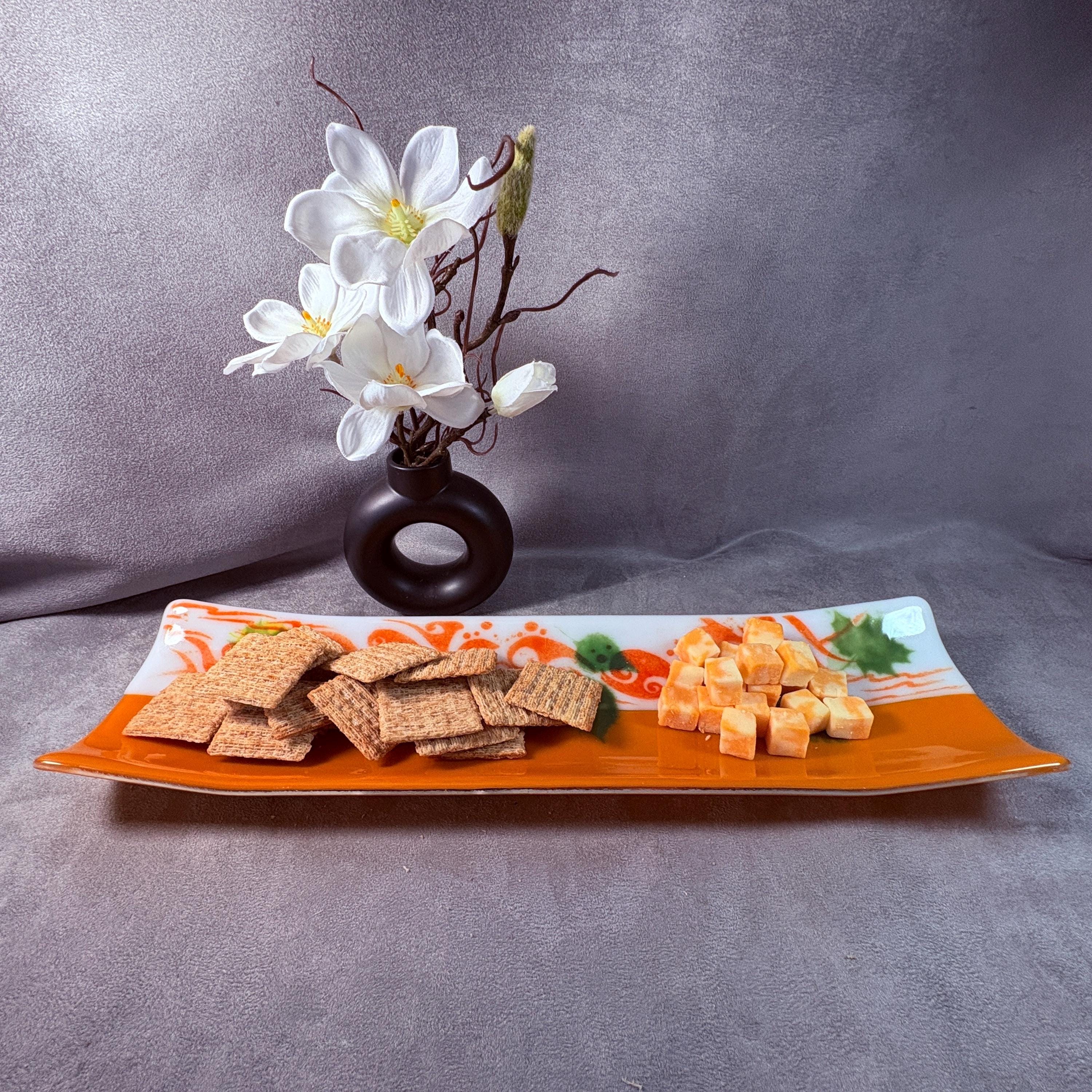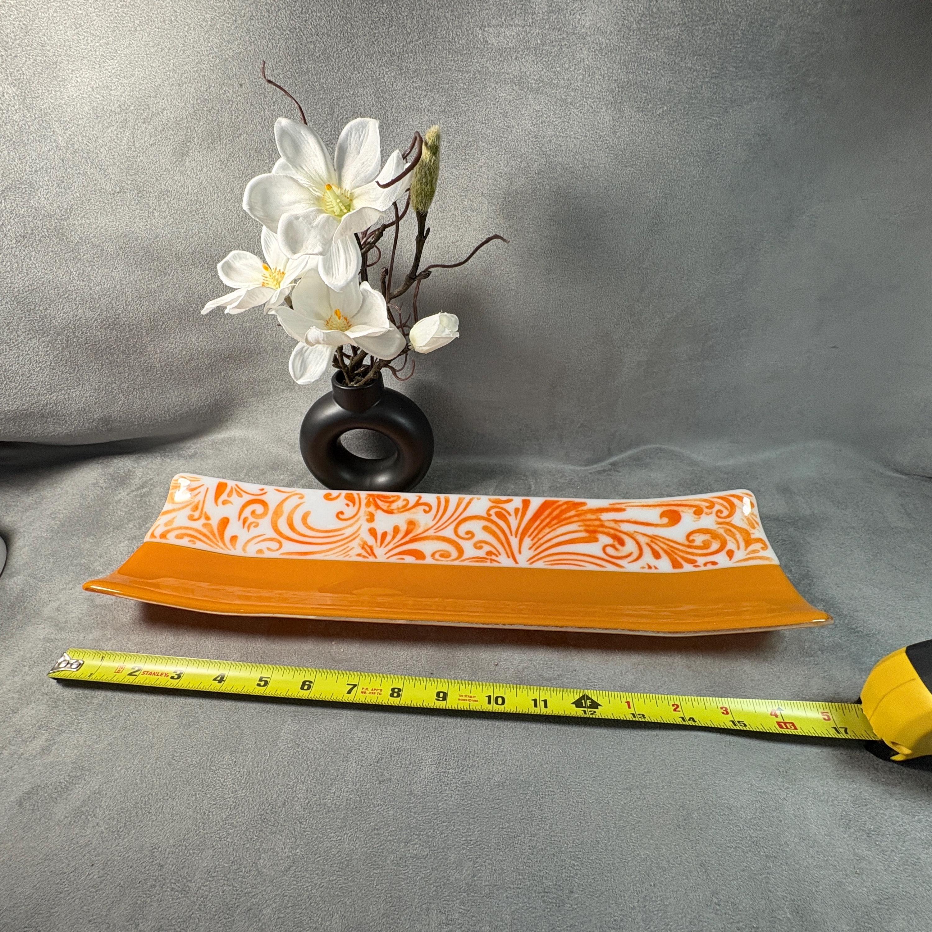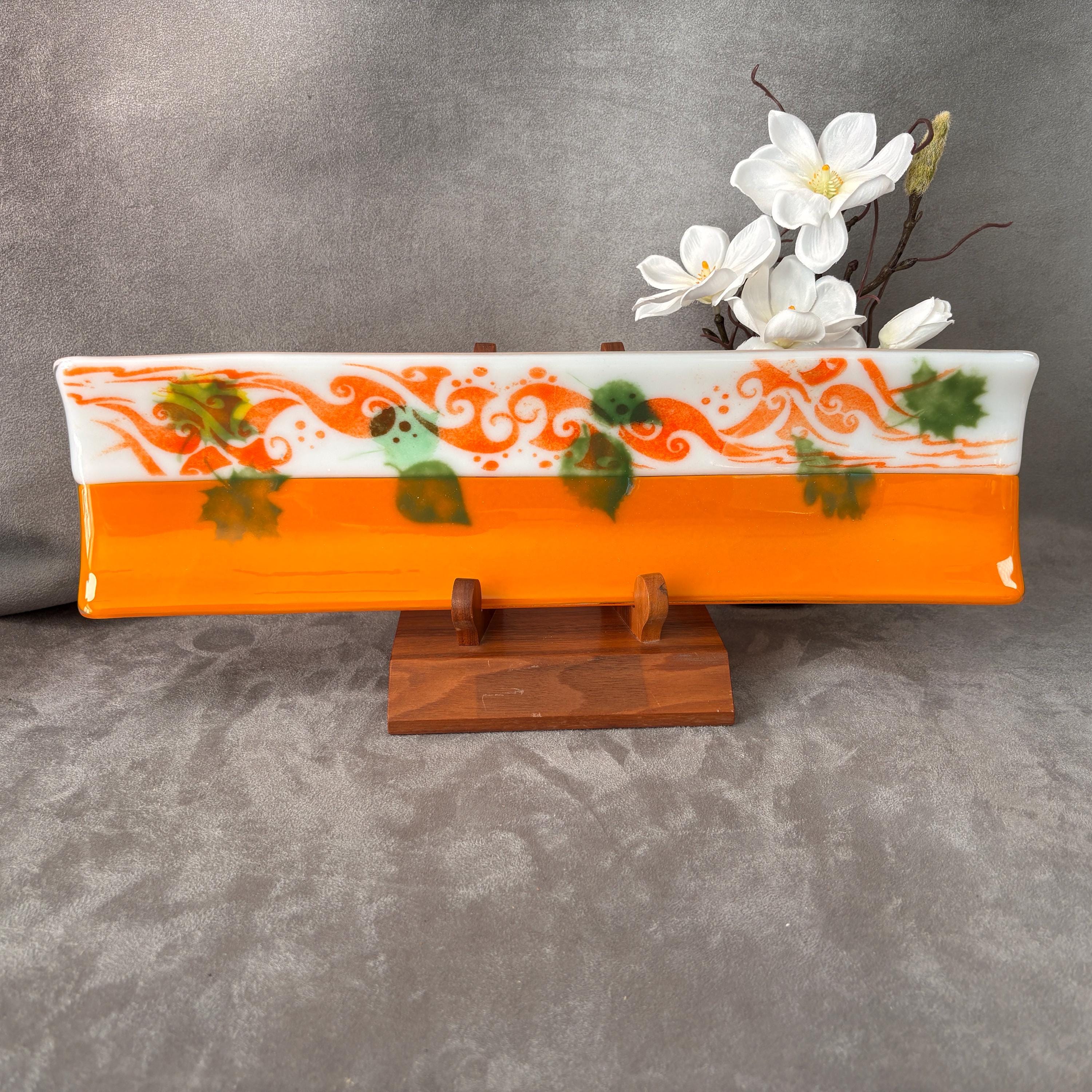 lgtray005-Orange Design – 17” Hand-Fused Glass Sushi Tray (Because Your Sushi Deserves to Feel Fancy)