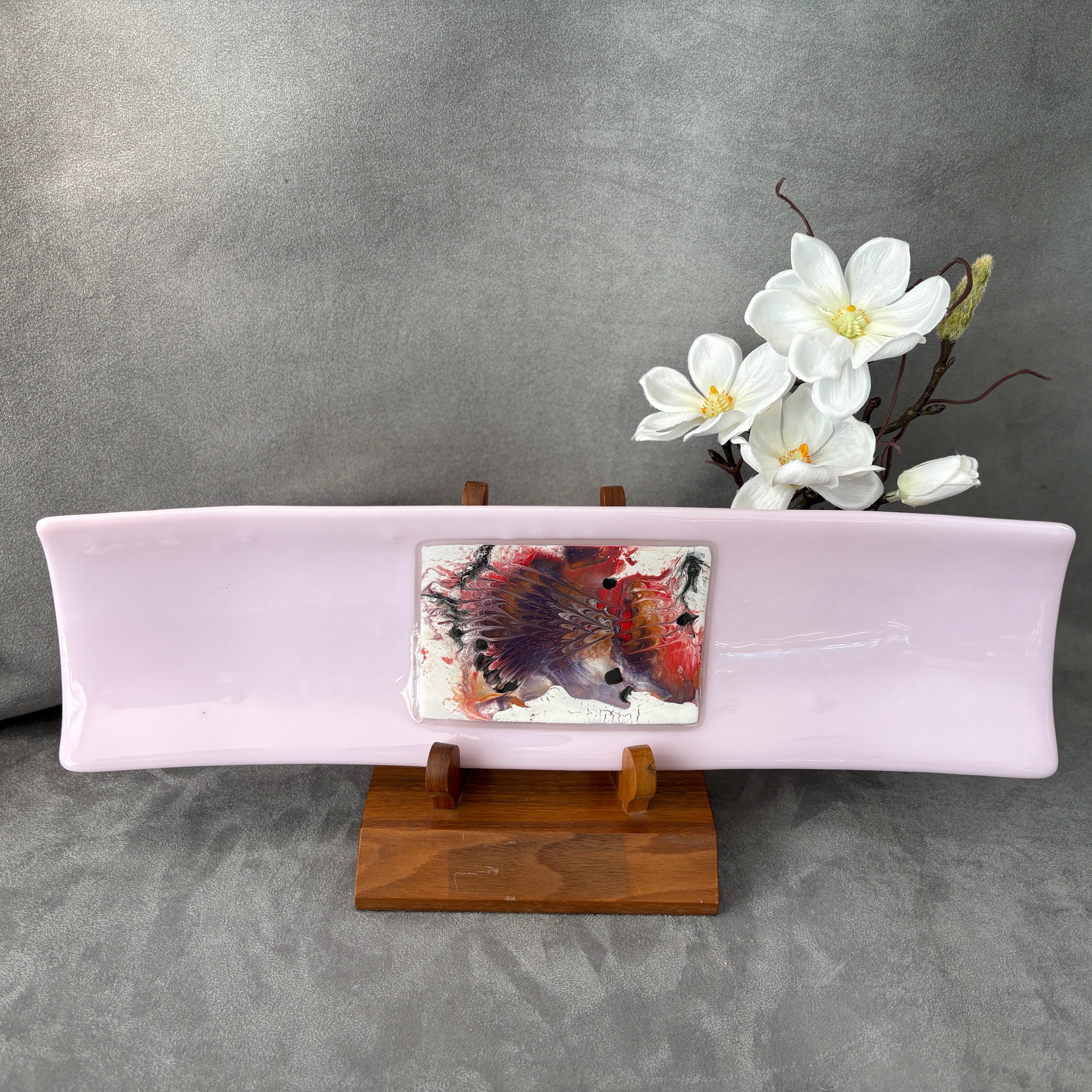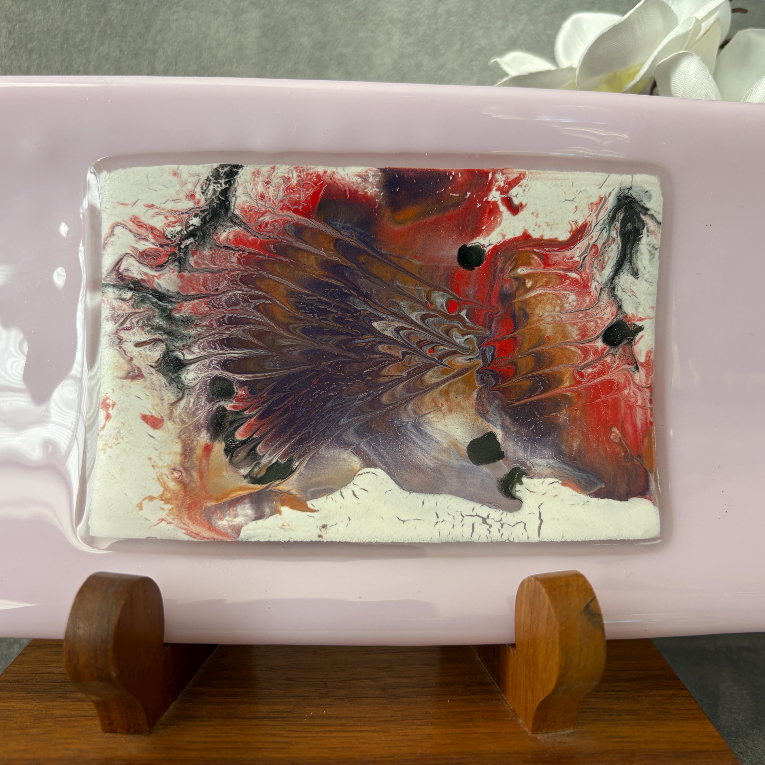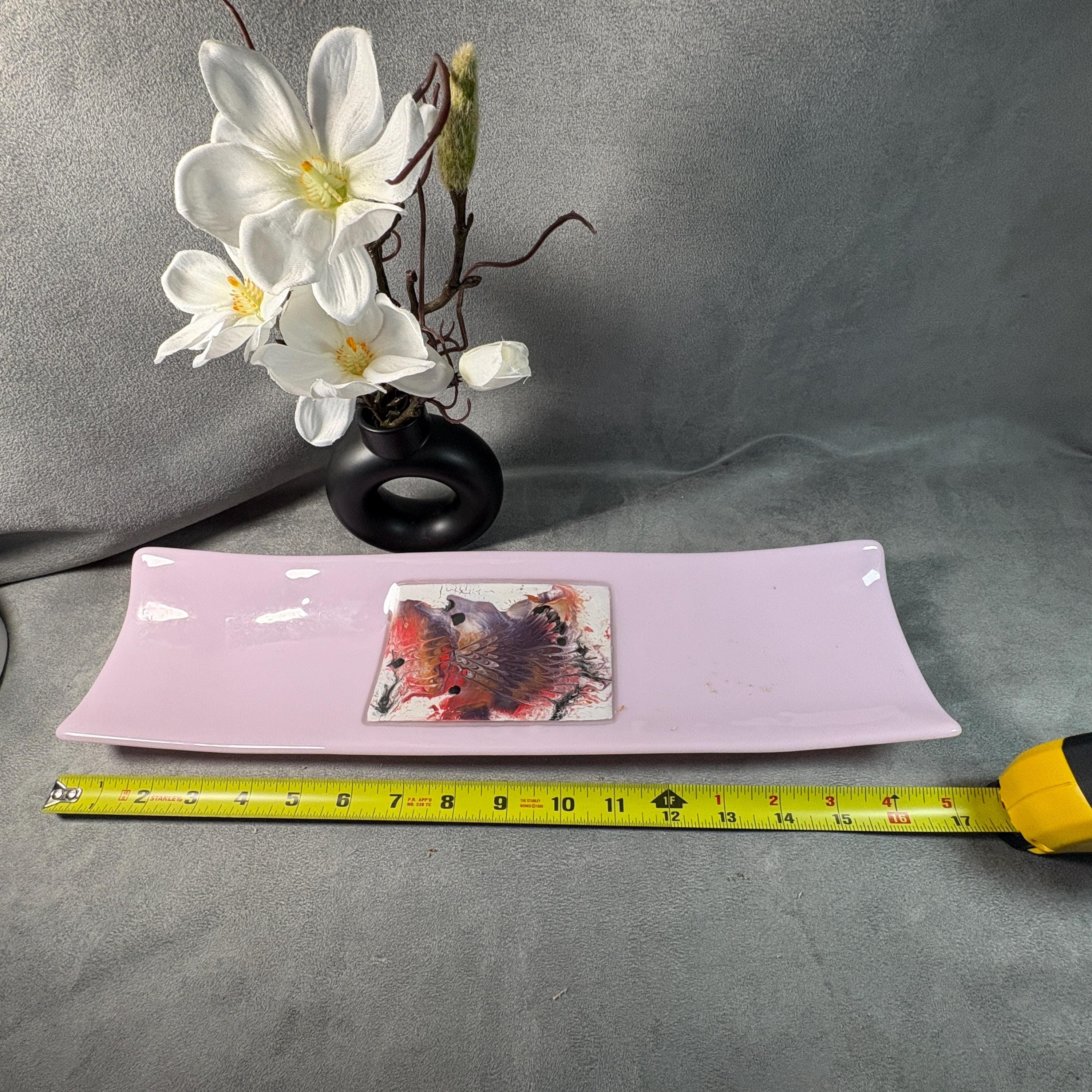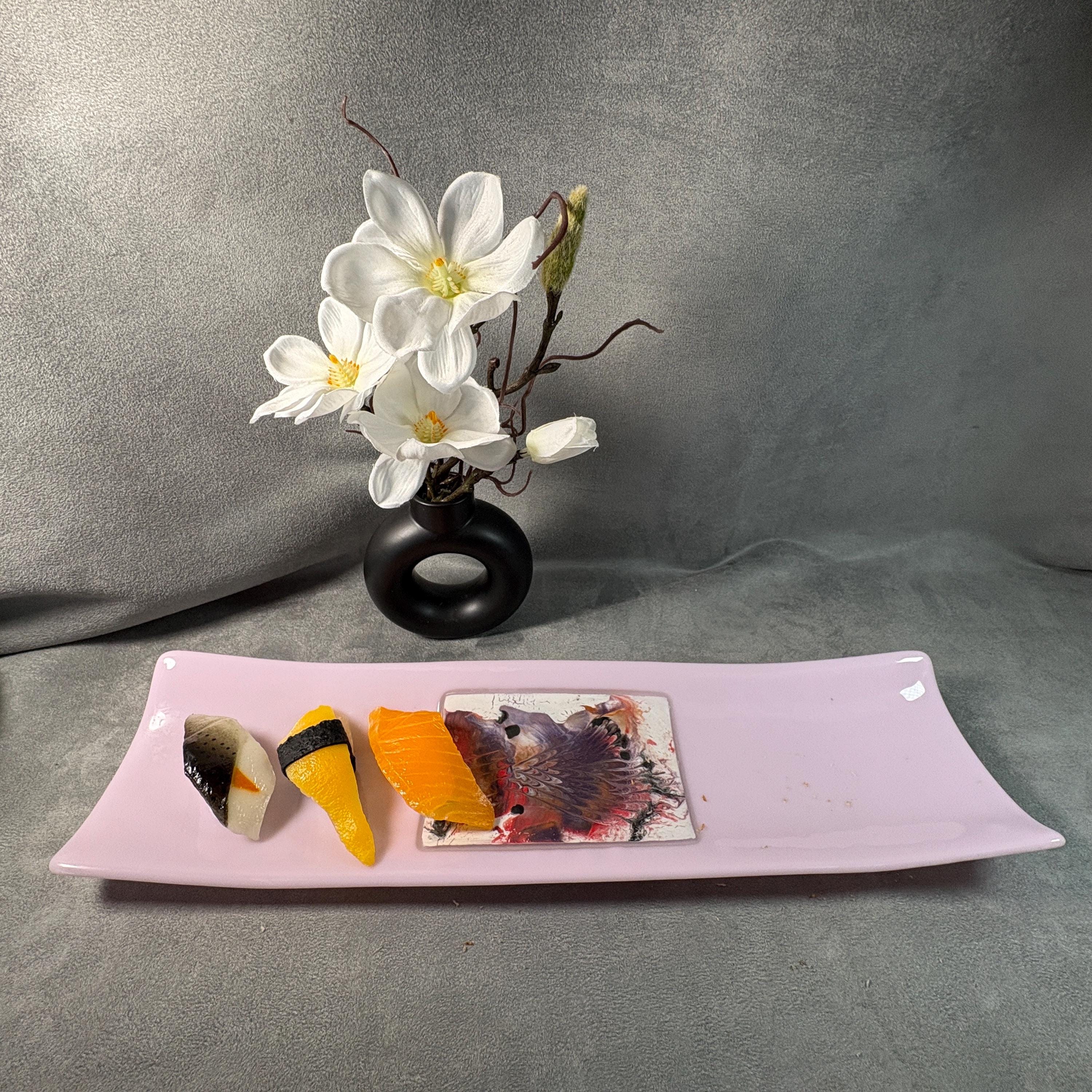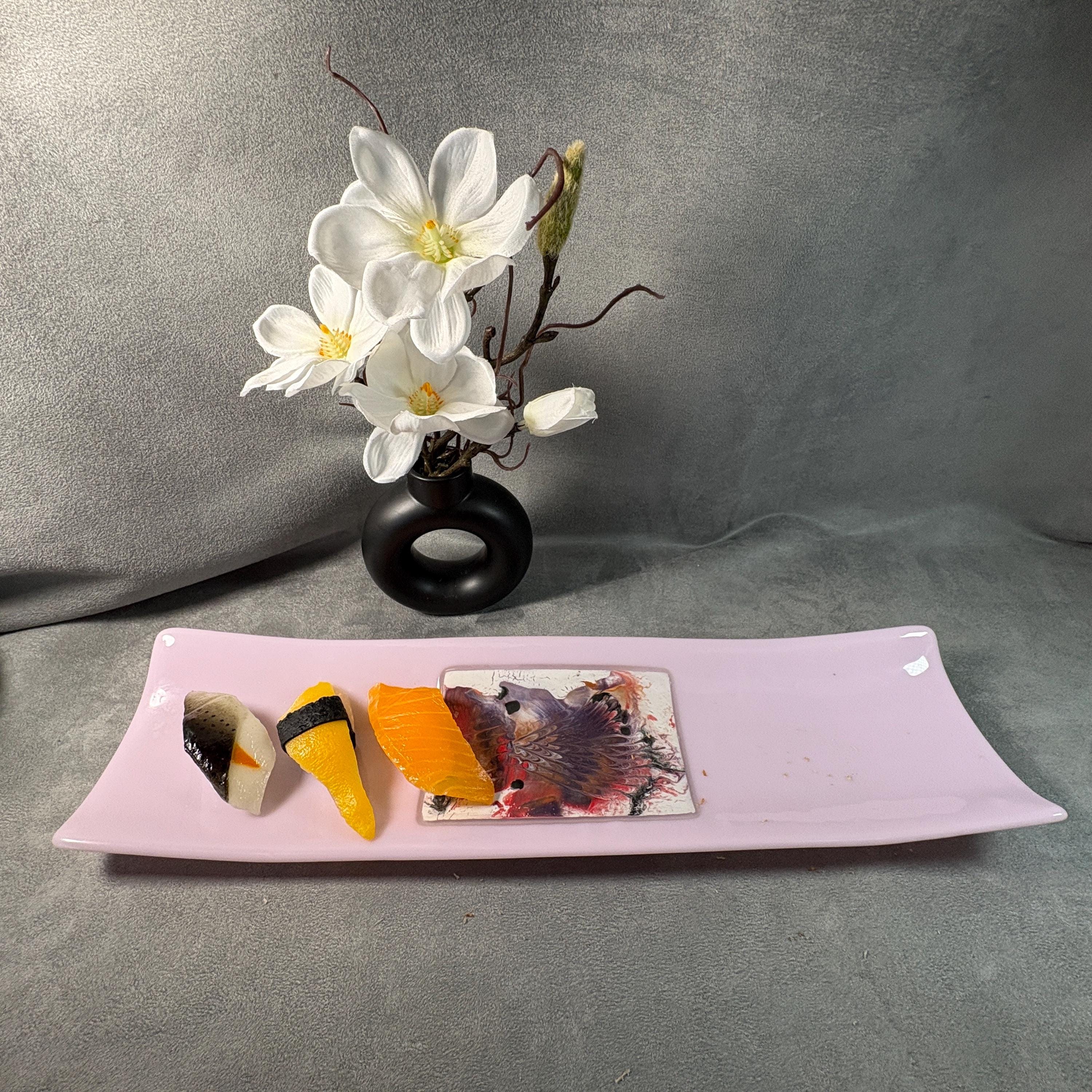 lgtray011-Pink Chaos – 17” Hand-Fused Glass Sushi Tray (Because Your Sushi Deserves to Feel Fancy)