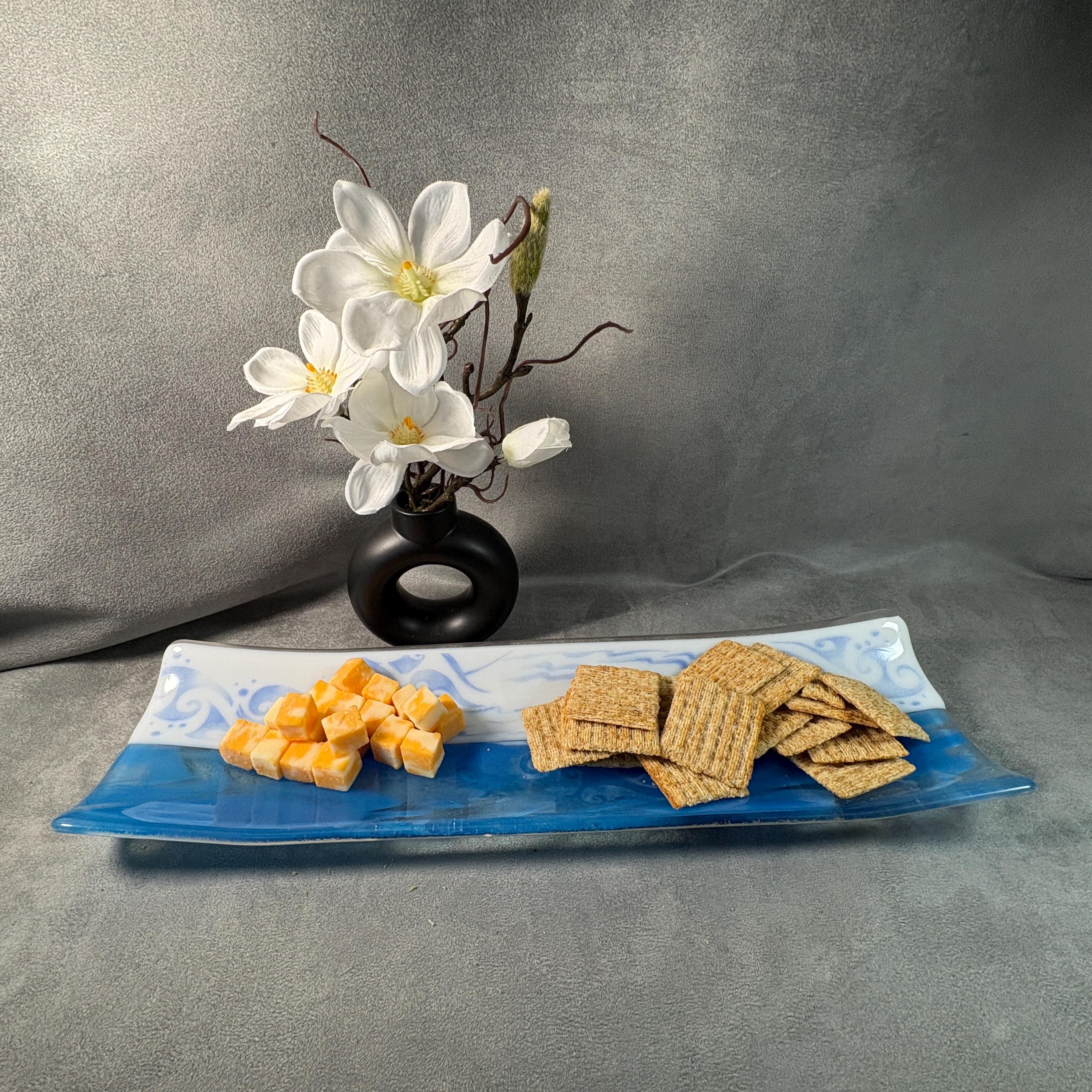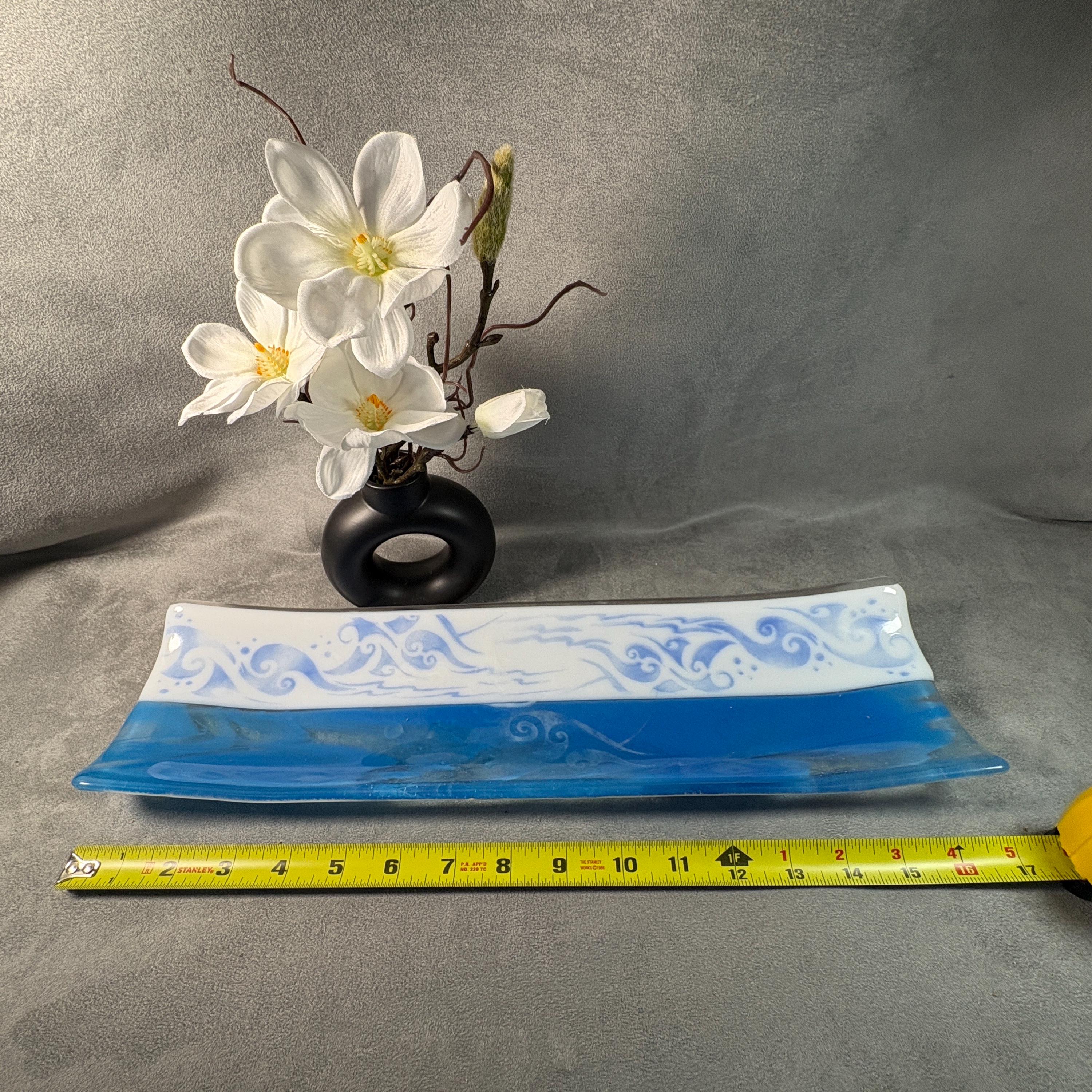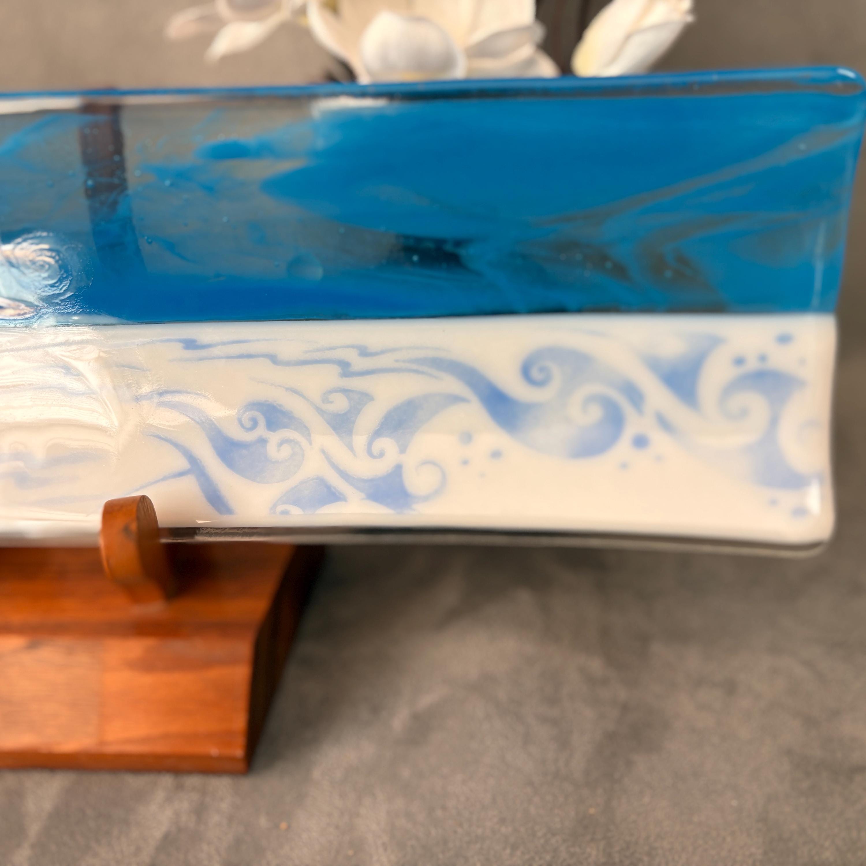 lgtray009-Blue Swirl – 17” Hand-Fused Glass Sushi Tray (Because Your Sushi Deserves to Feel Fancy)