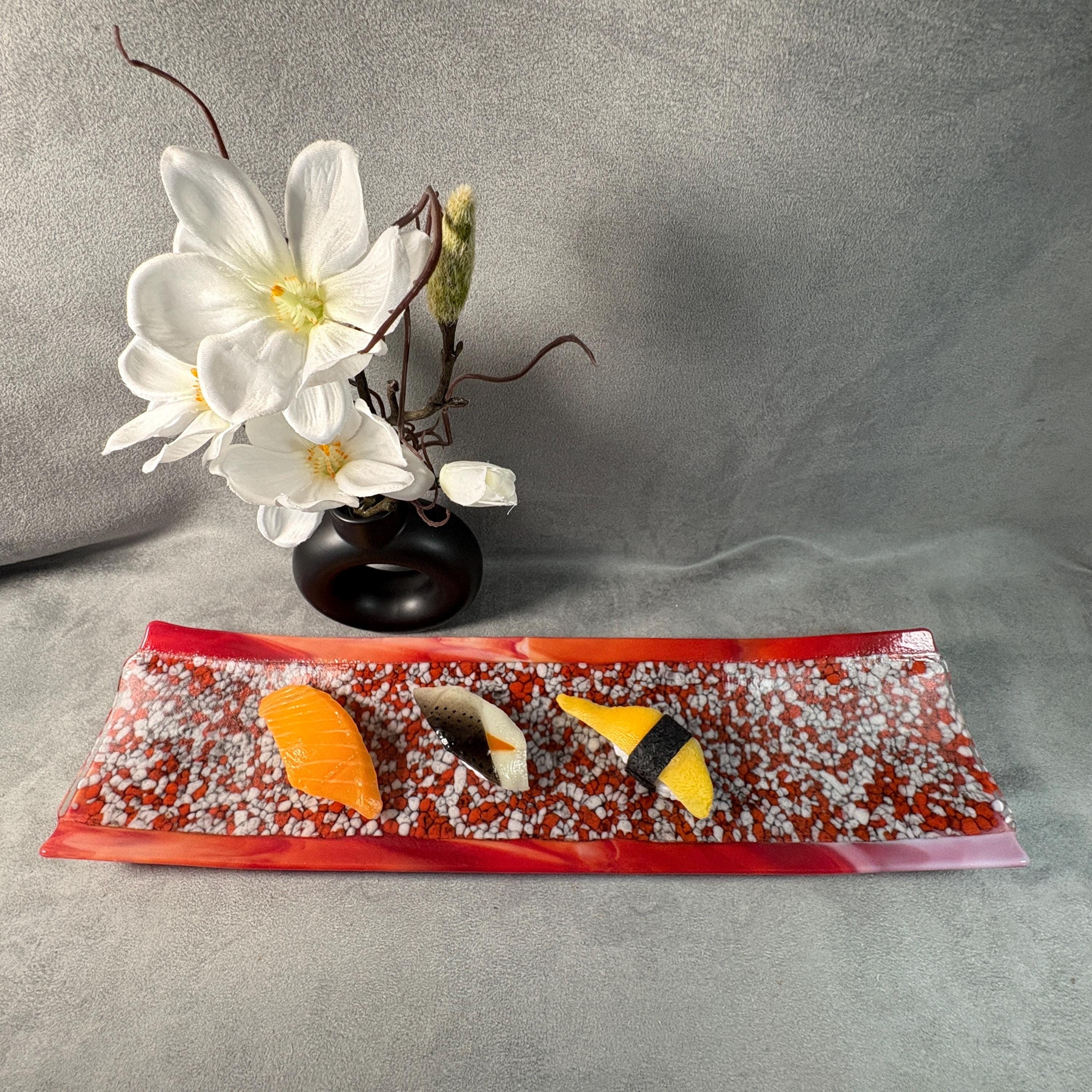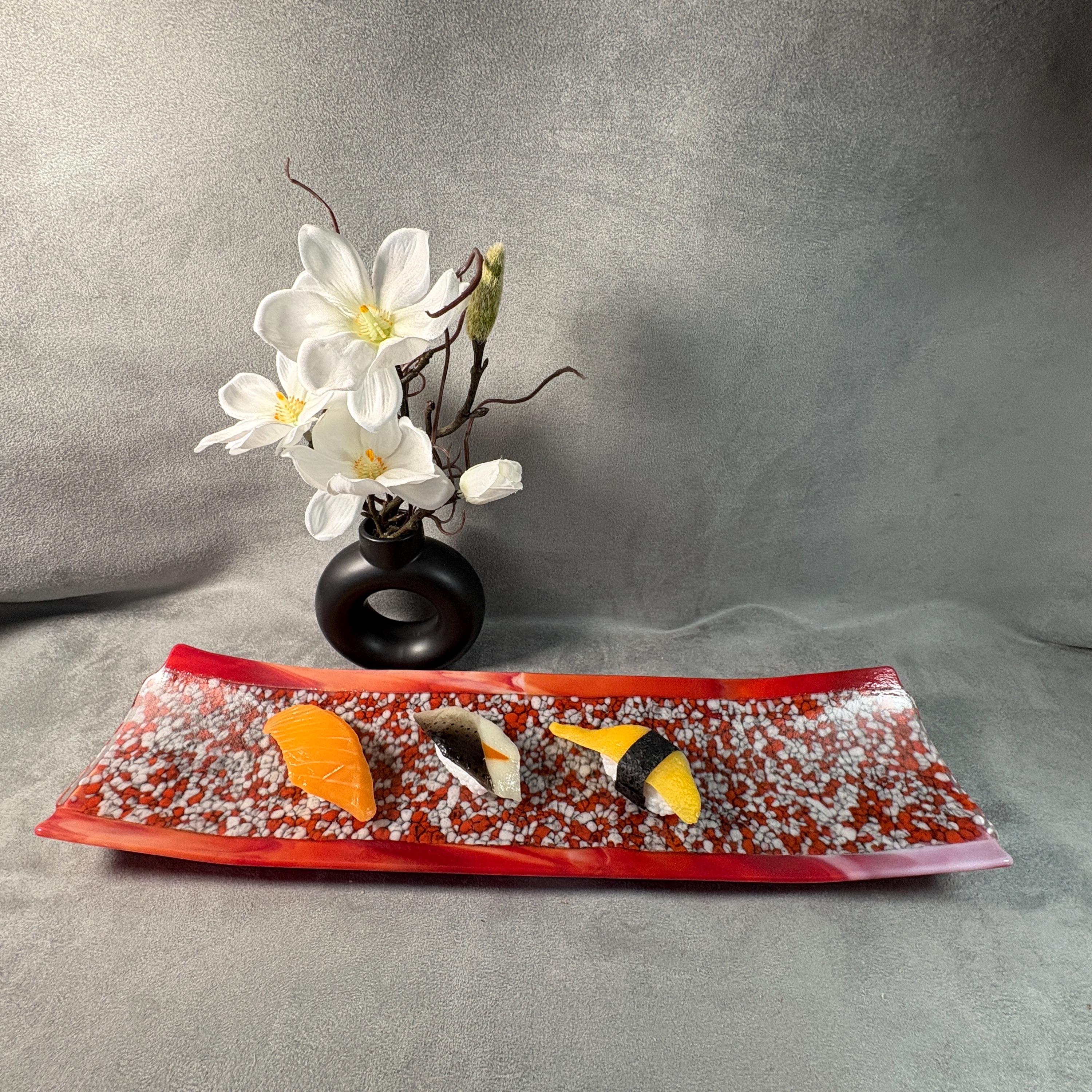 lgtray012-Red Road – 17” Hand-Fused Glass Sushi Tray (Because Your Sushi Deserves to Feel Fancy)