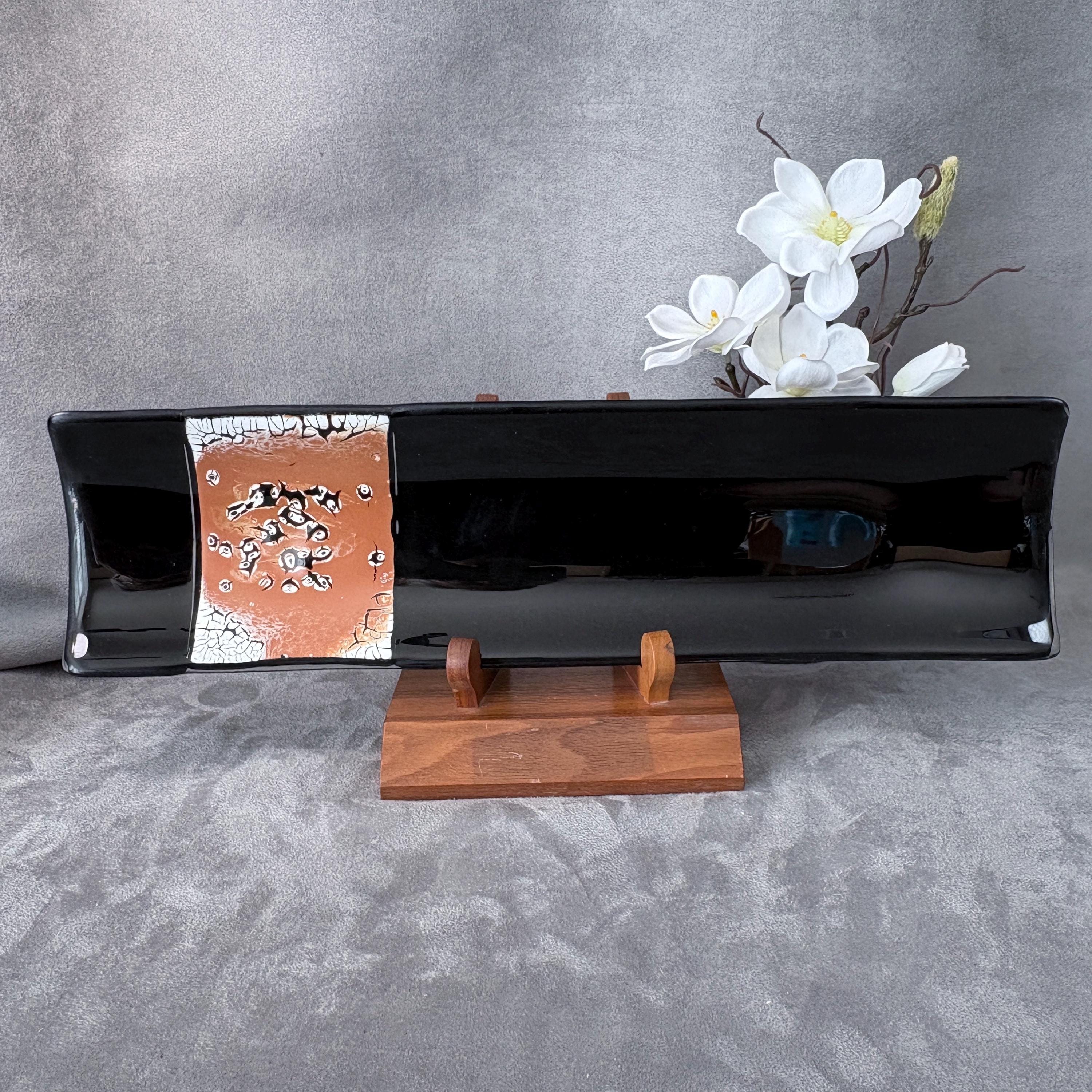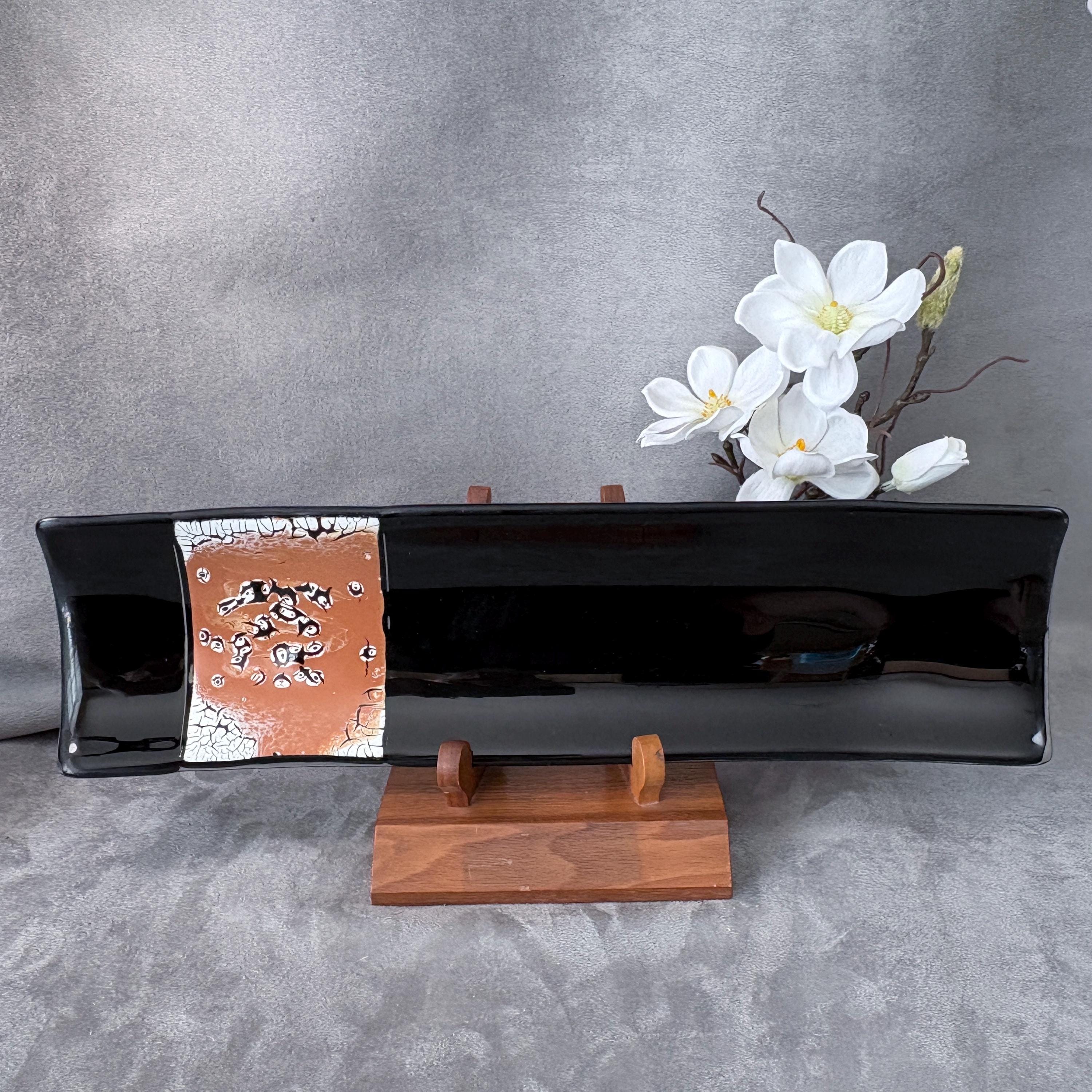 Invite your meals to the art gallery! For those who believe dinnerware should also be a conversation, this fused glass sushi tray brings art to the table — literally.