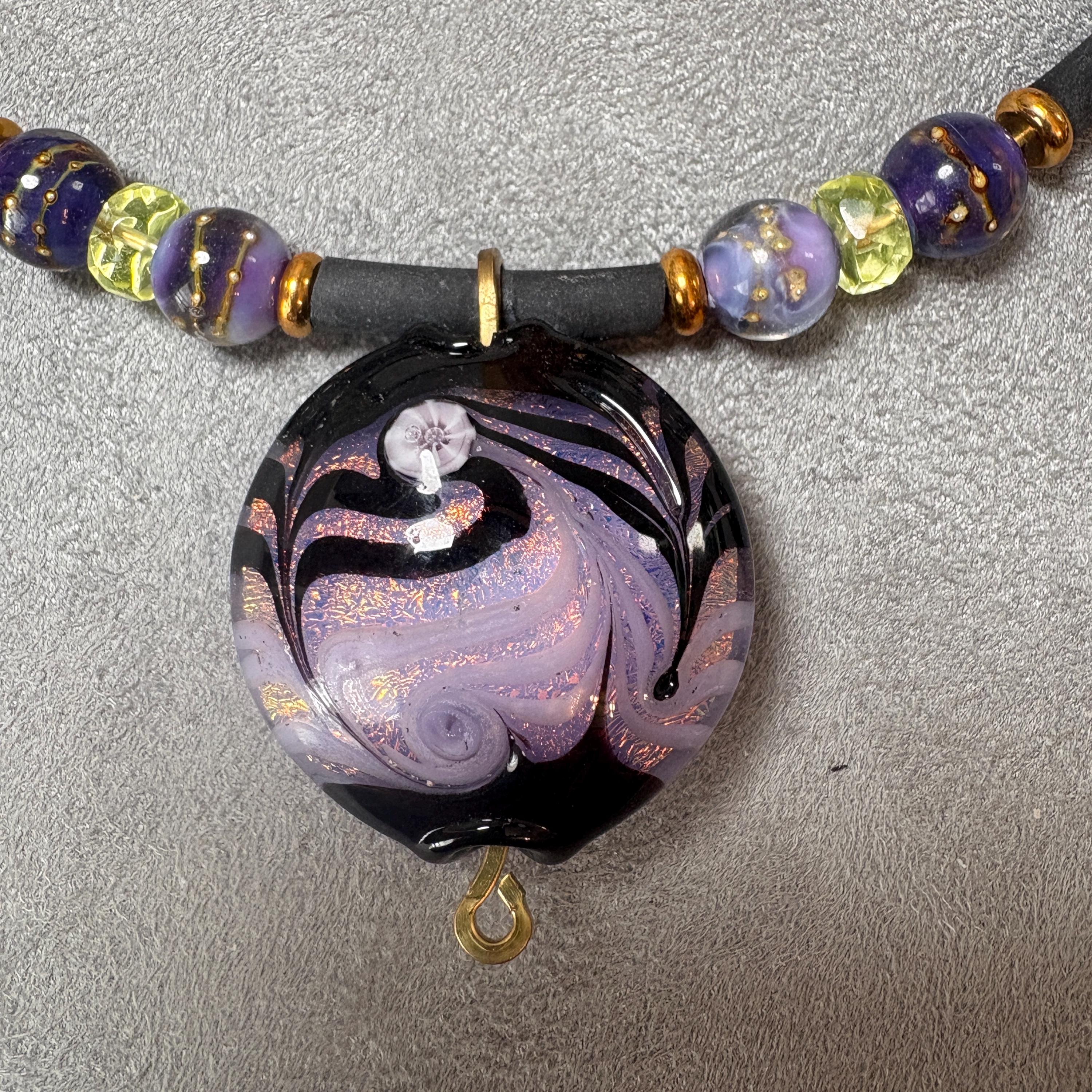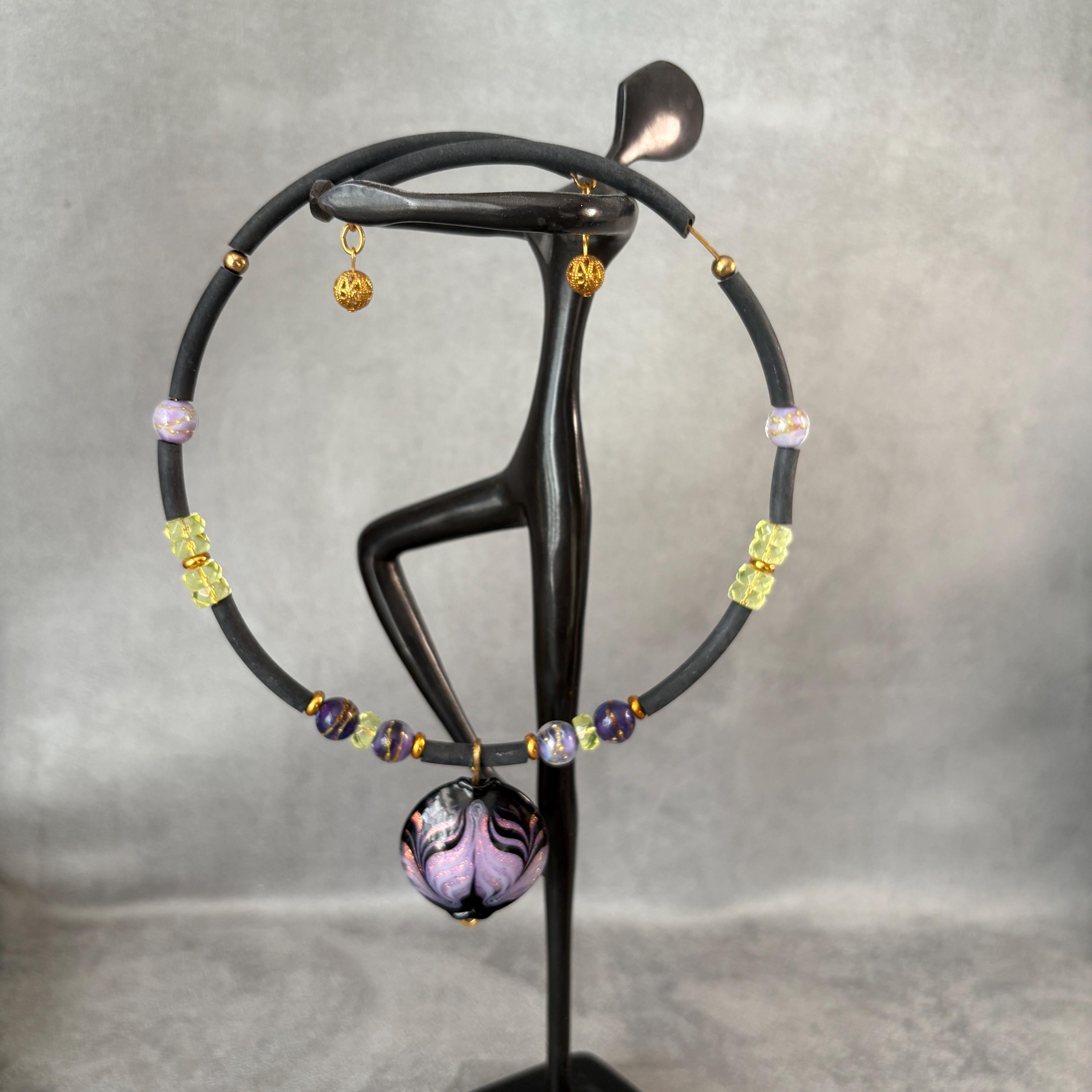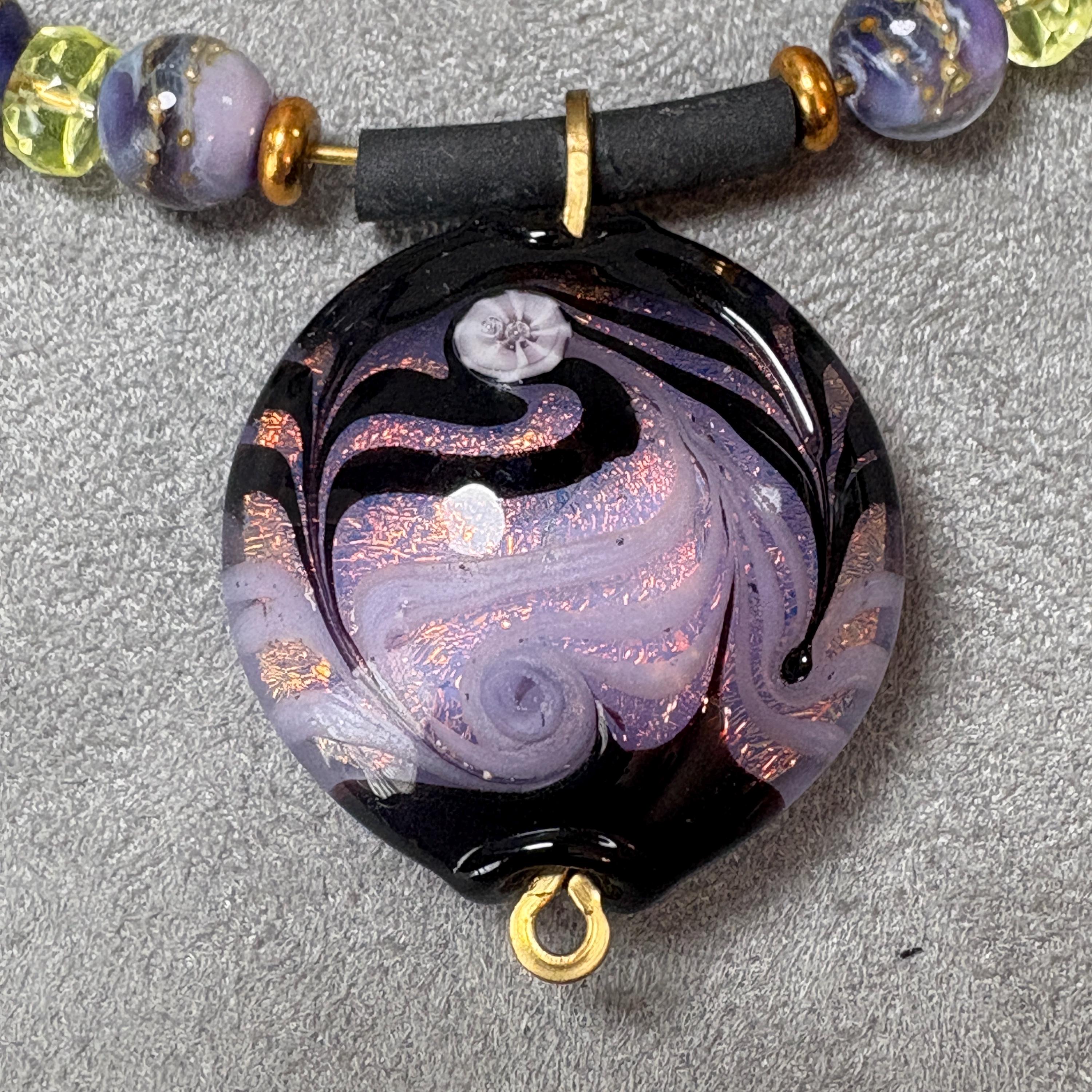 • Color & Pattern: One-of-a-kind purple and black bead and green lampworked beads