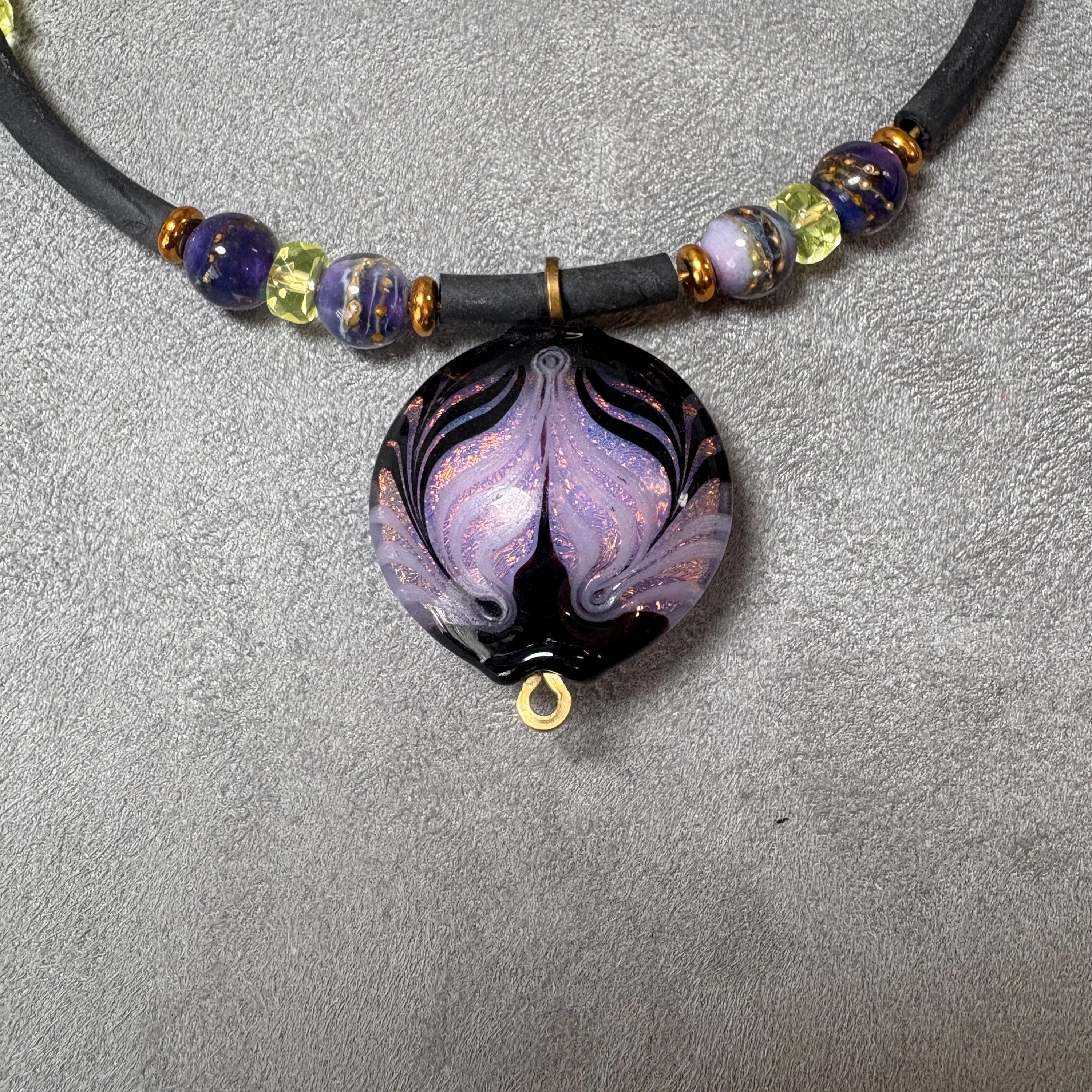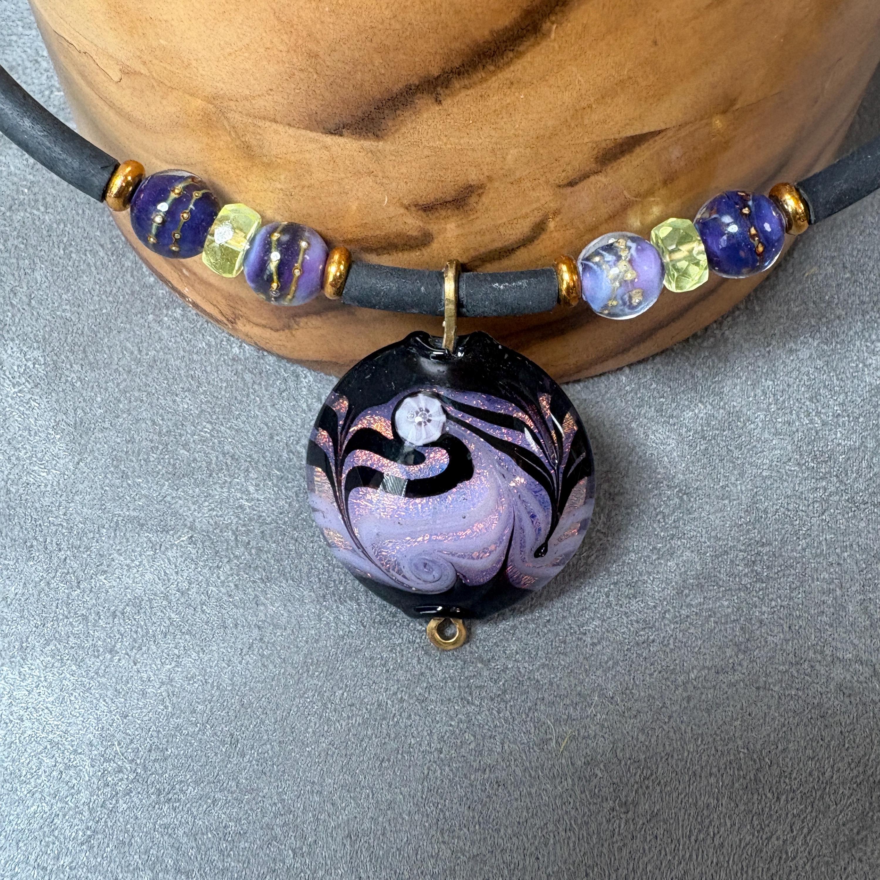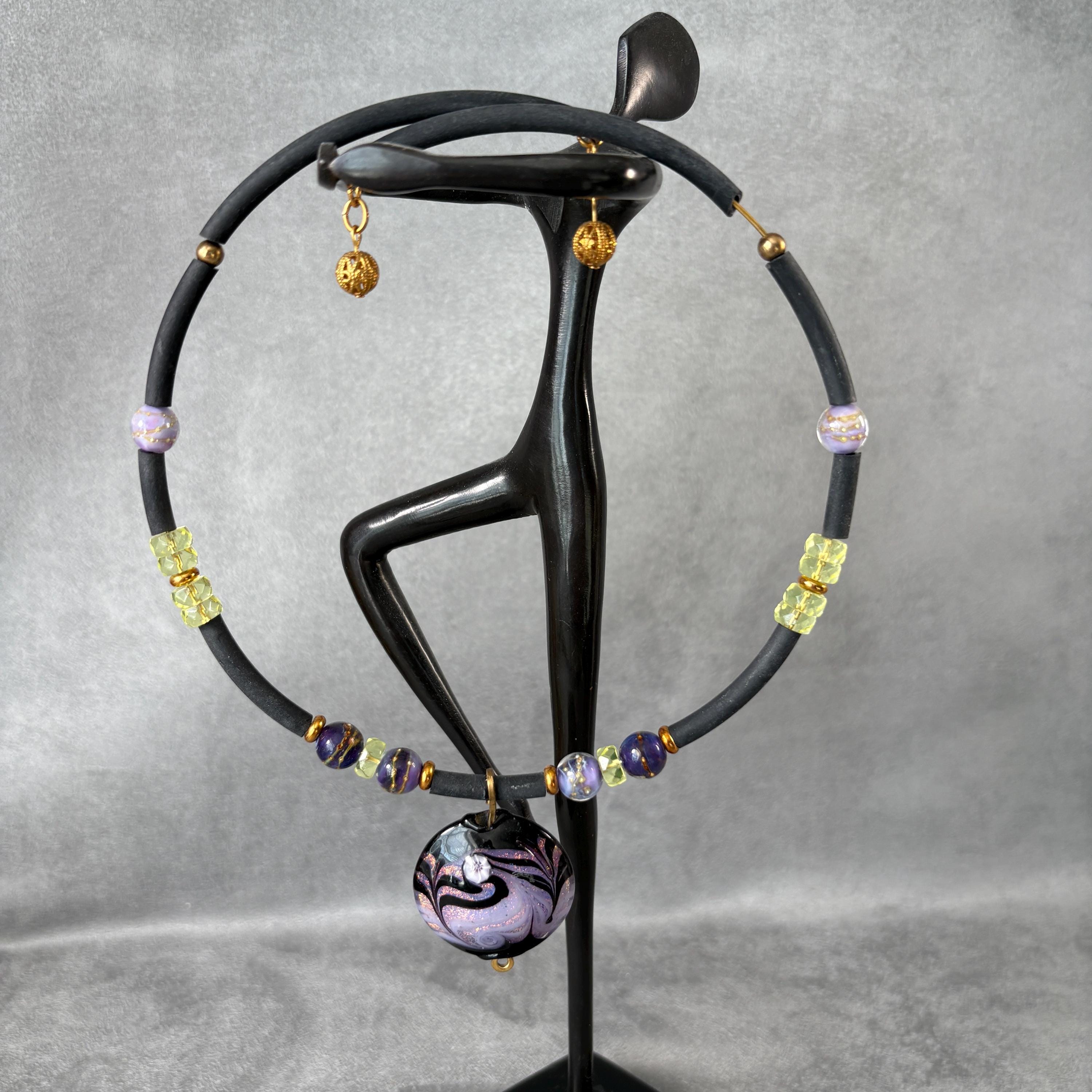 • Color & Pattern: One-of-a-kind purple and black bead and green lampworked beads