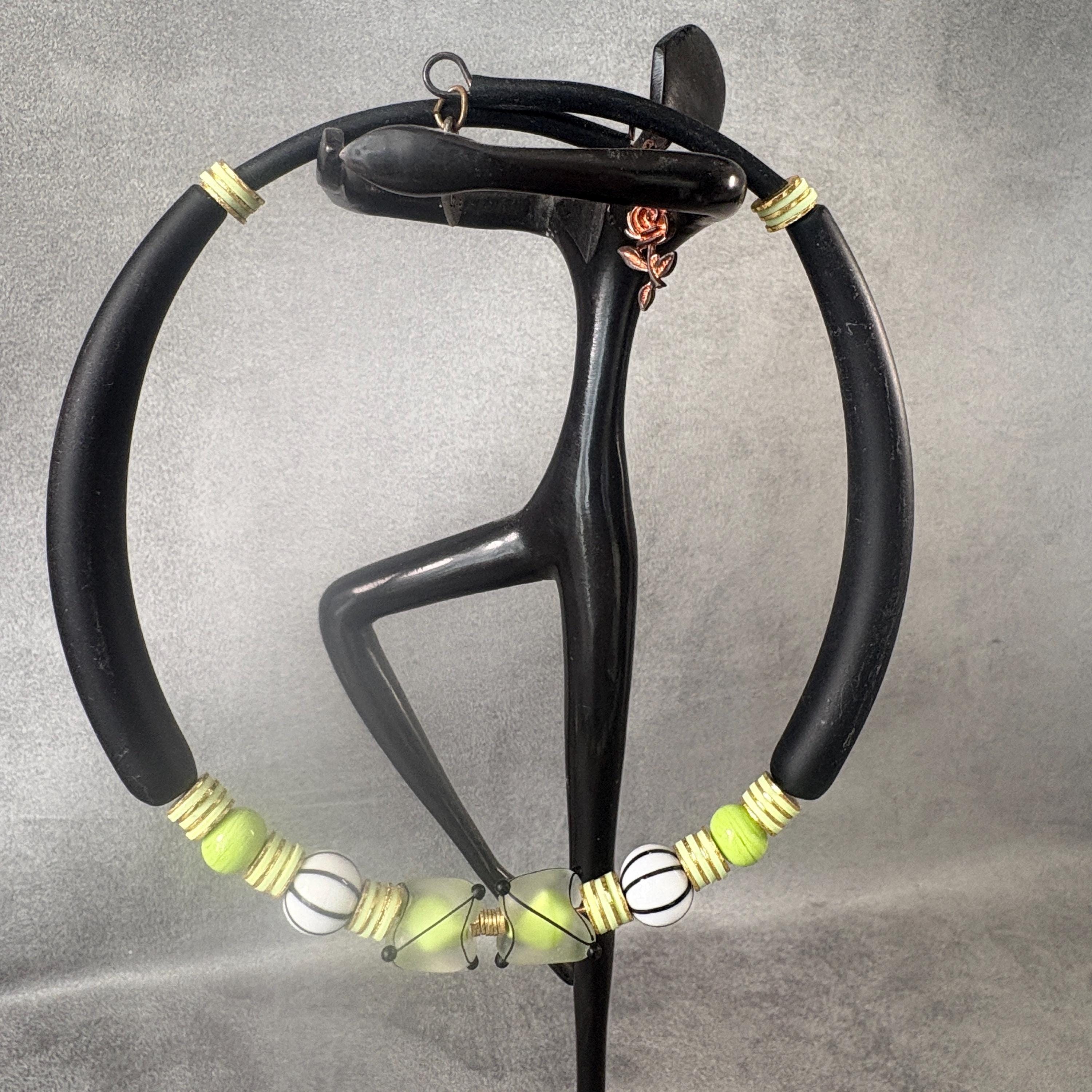 • Color & Pattern: One-of-a-kind black, white, and green lampworked beads