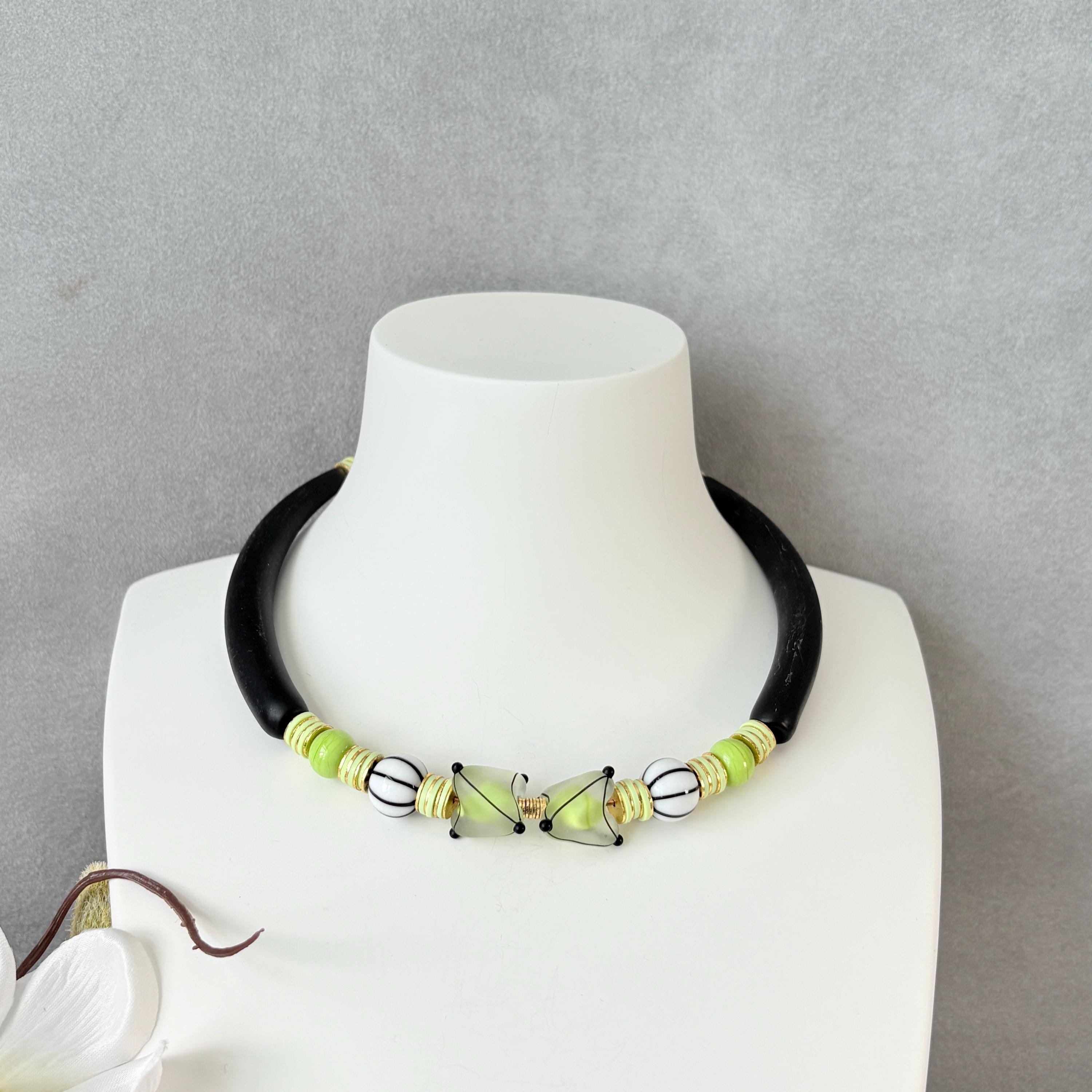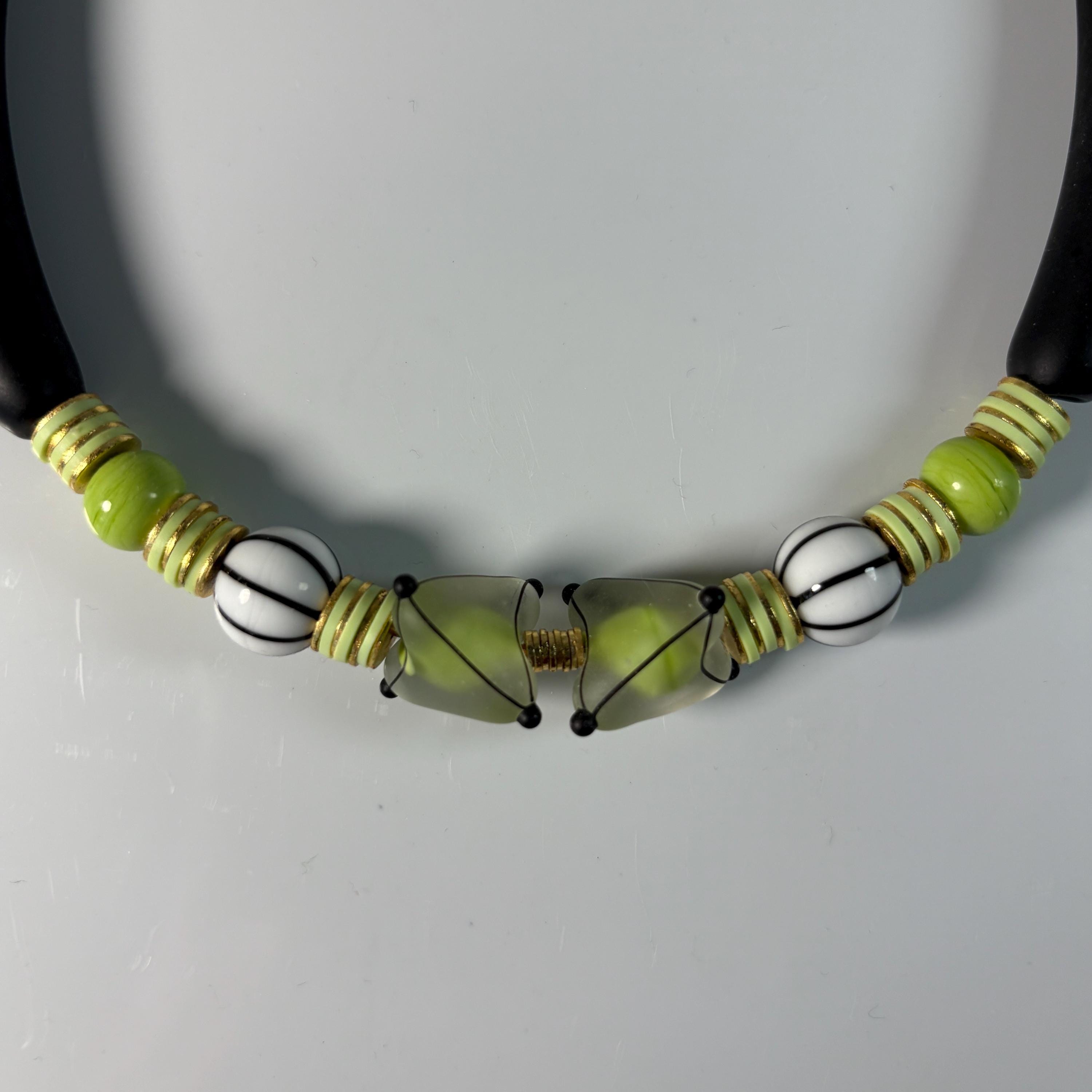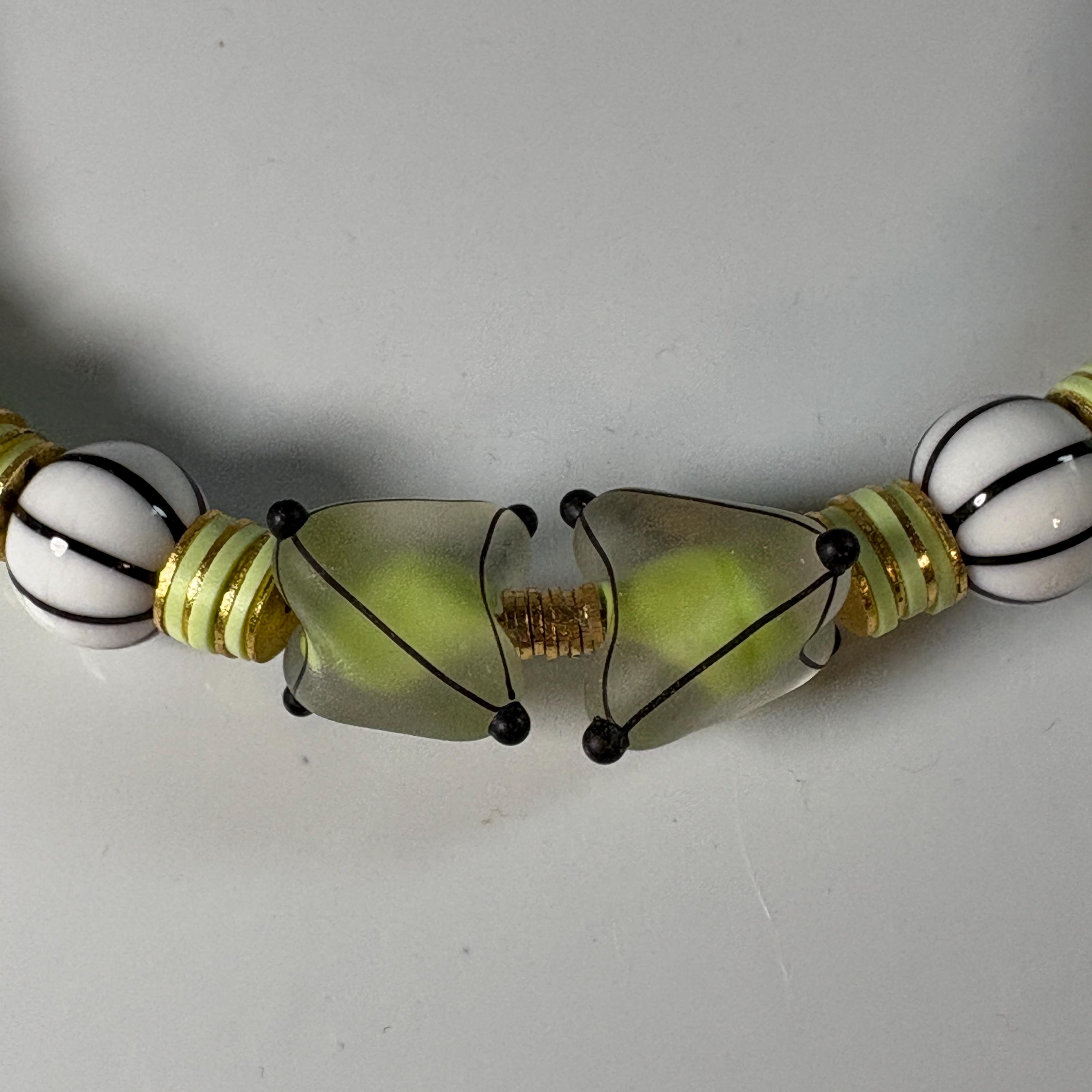 ➡️ This Listing is for 1 - green & white fused and lampworked glass choker only.