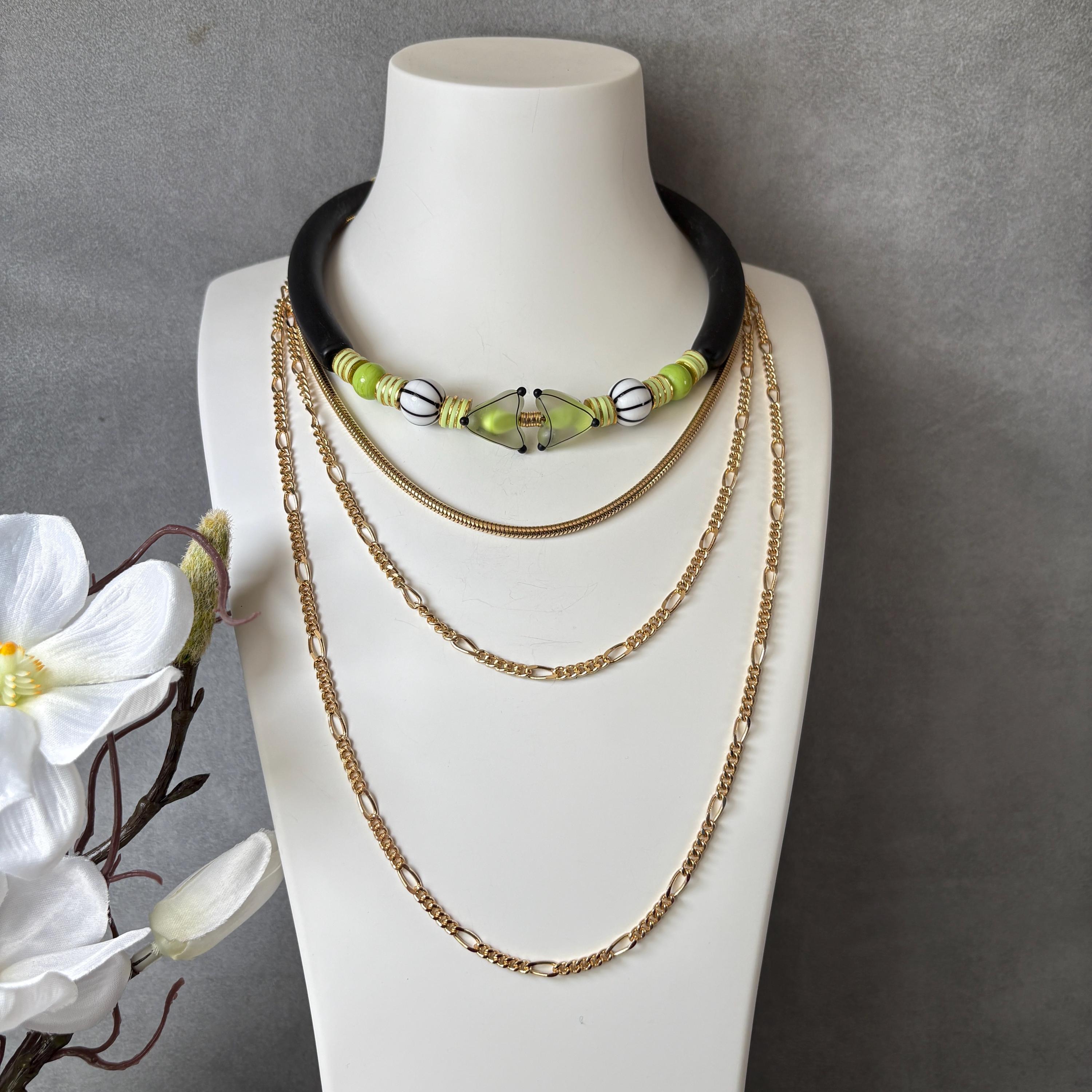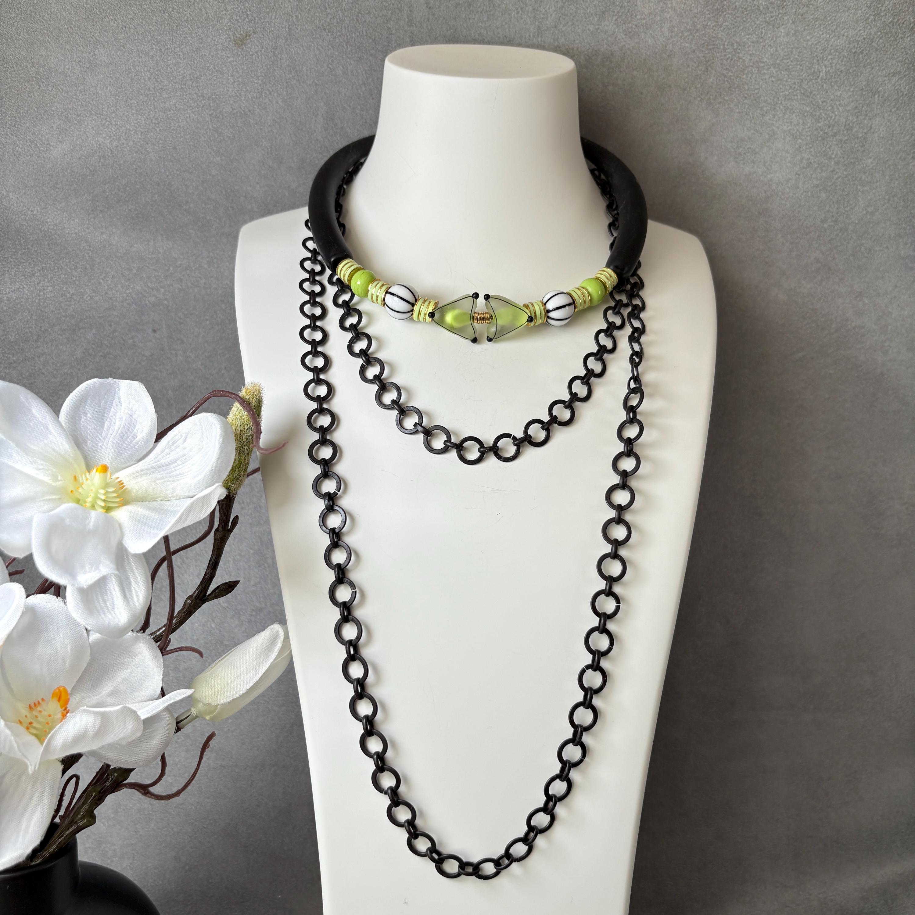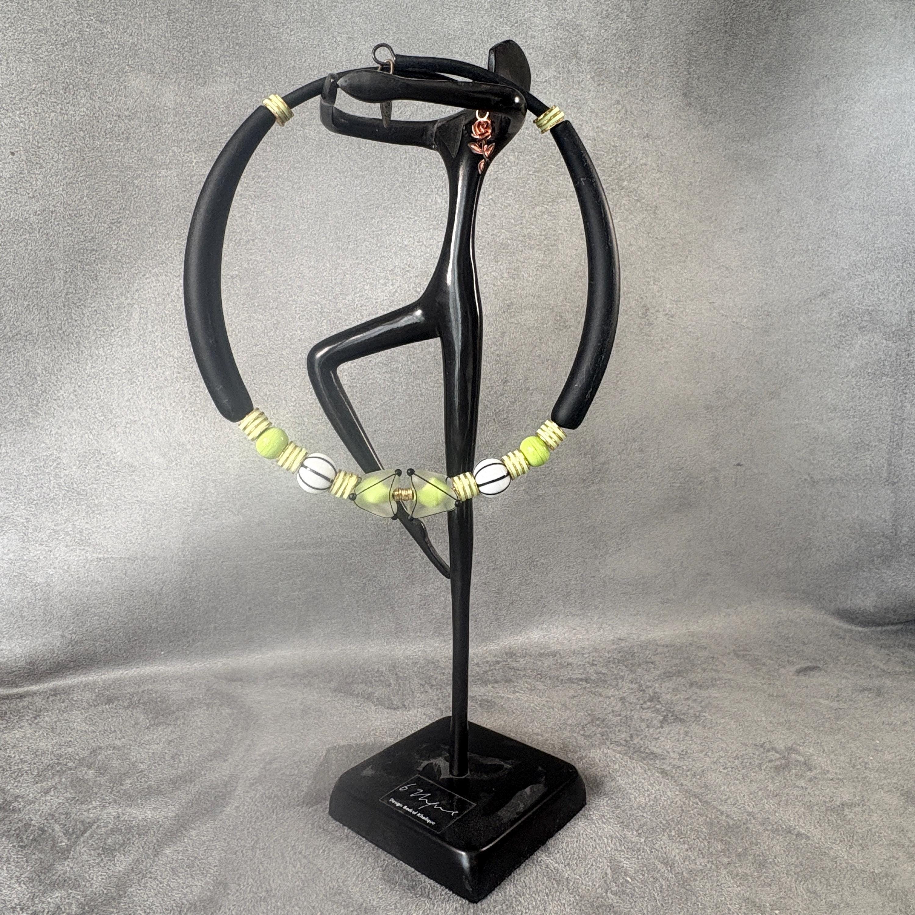 ➡️ This Listing is for 1 - green & white fused and lampworked glass choker only.