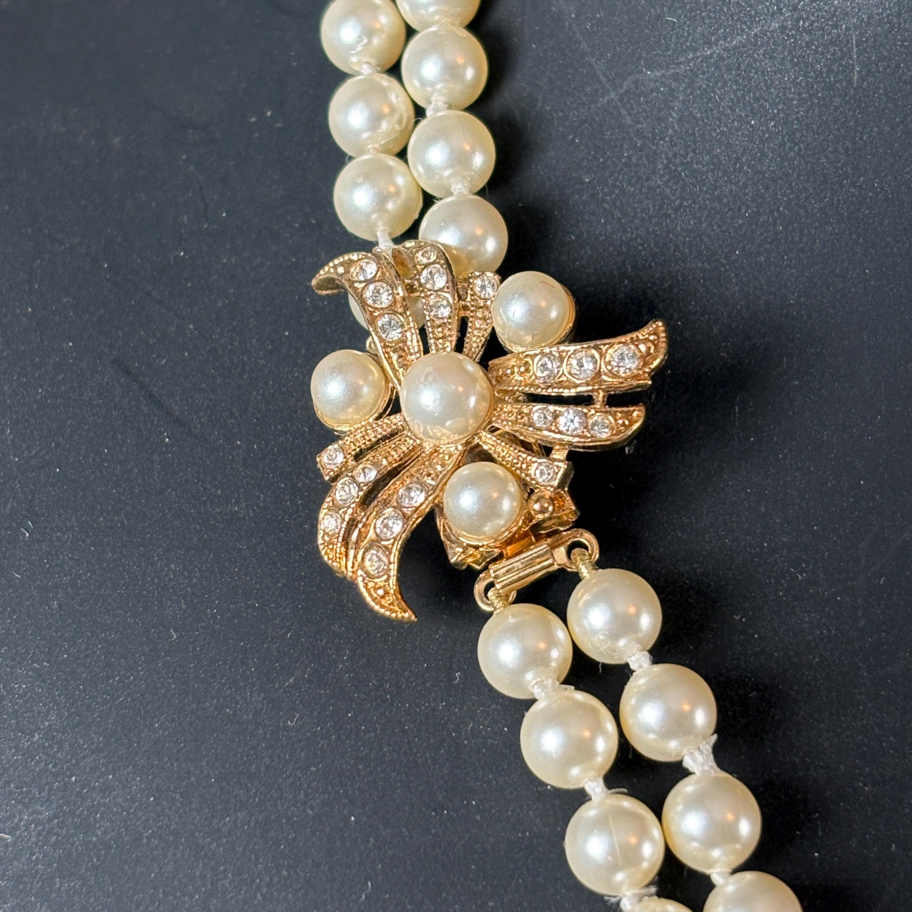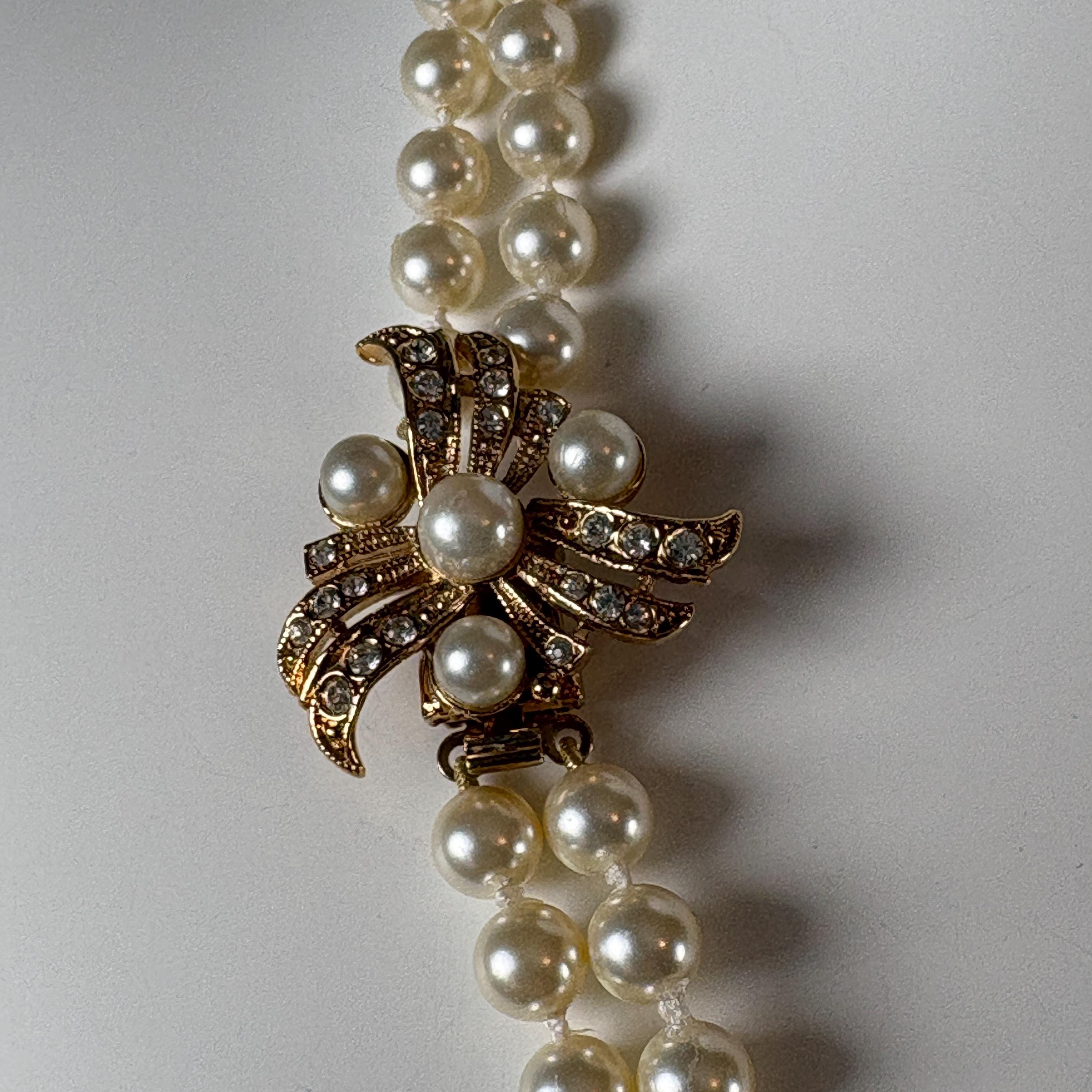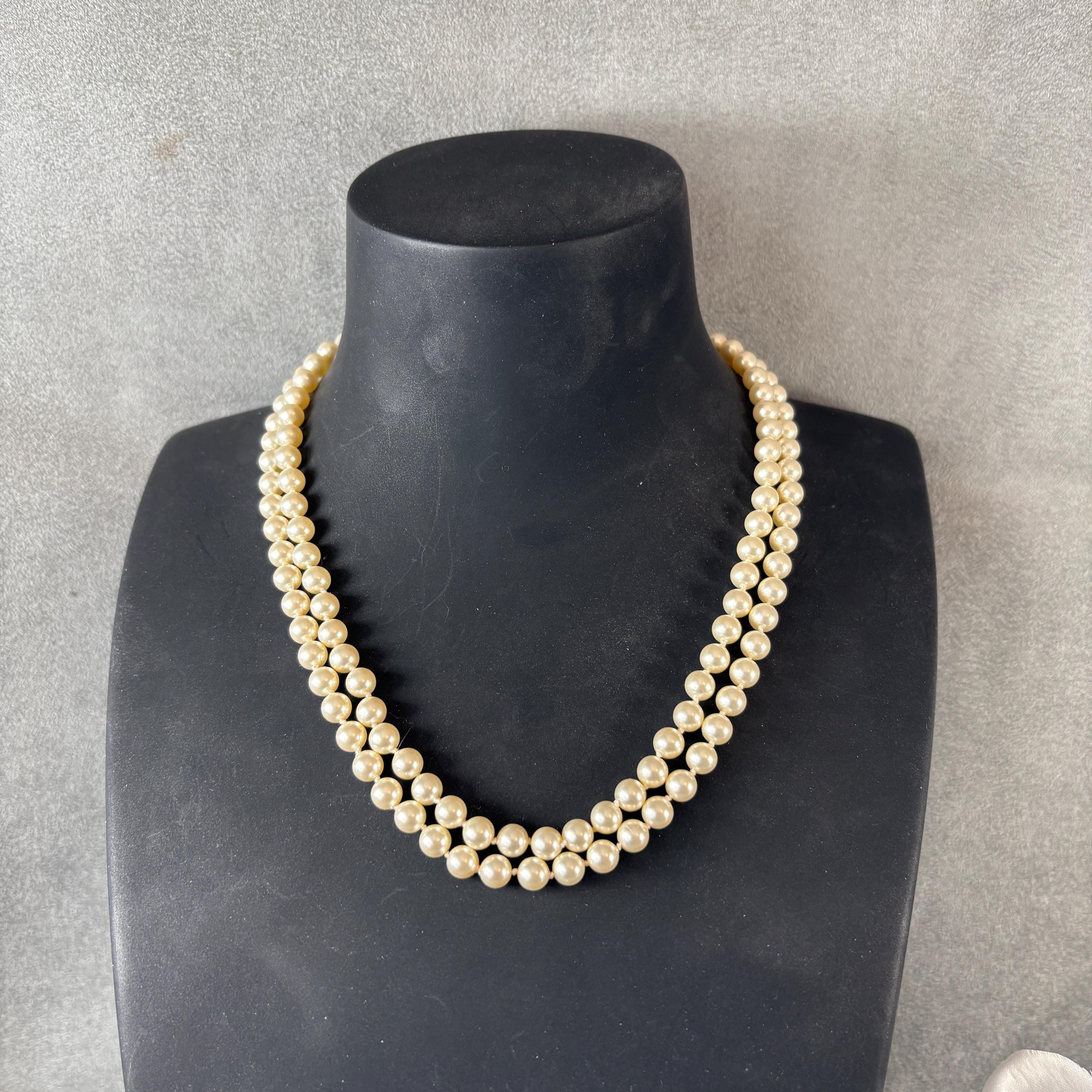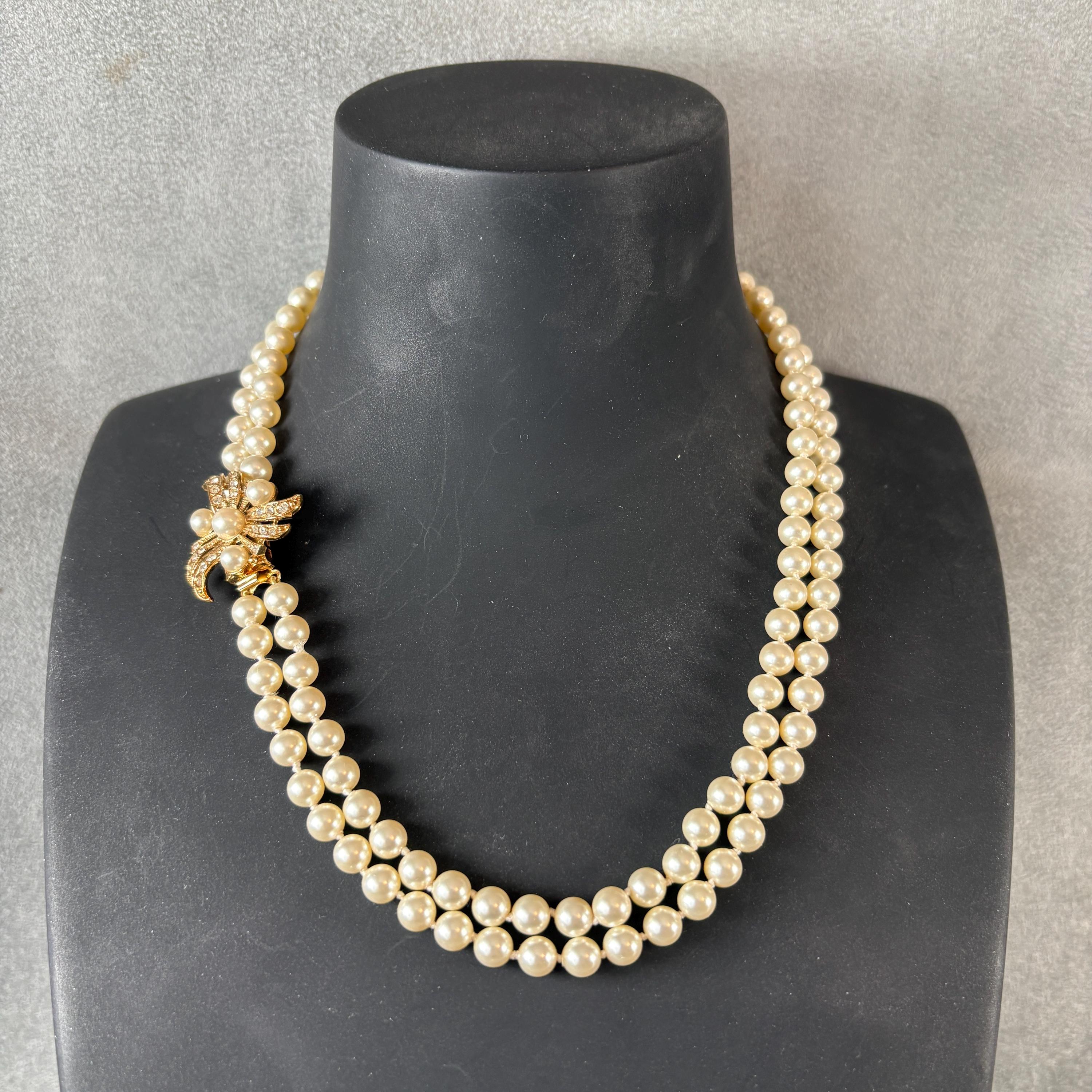 • Double-stranded and knotted Swarovski pearl necklace